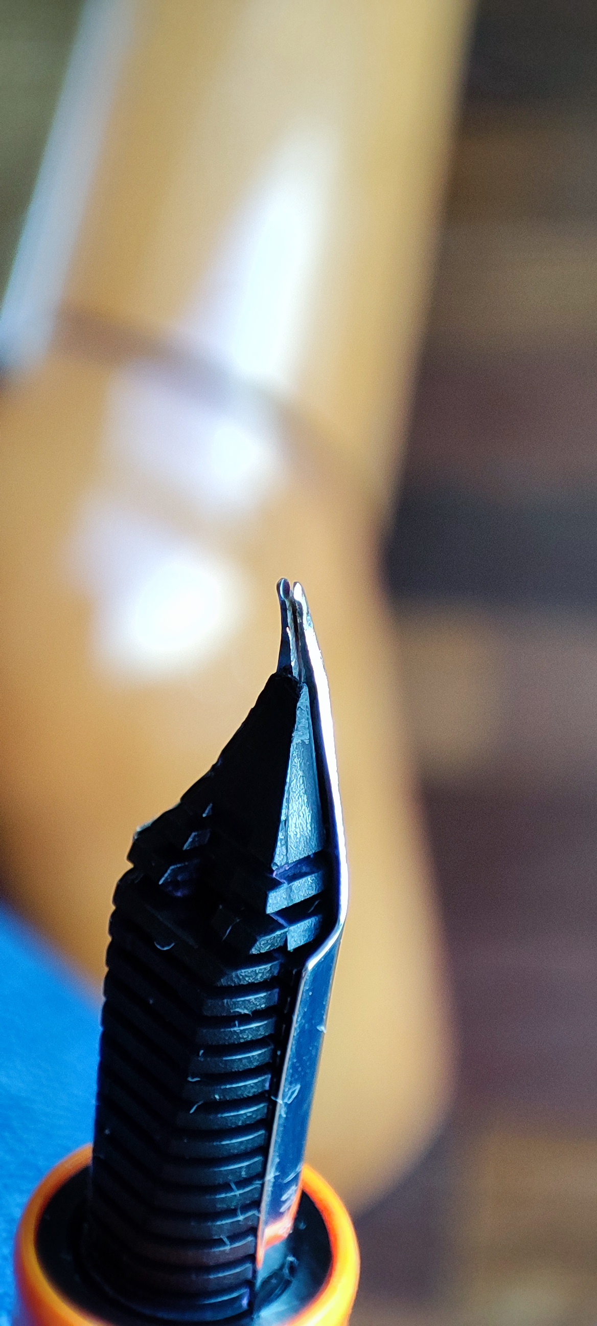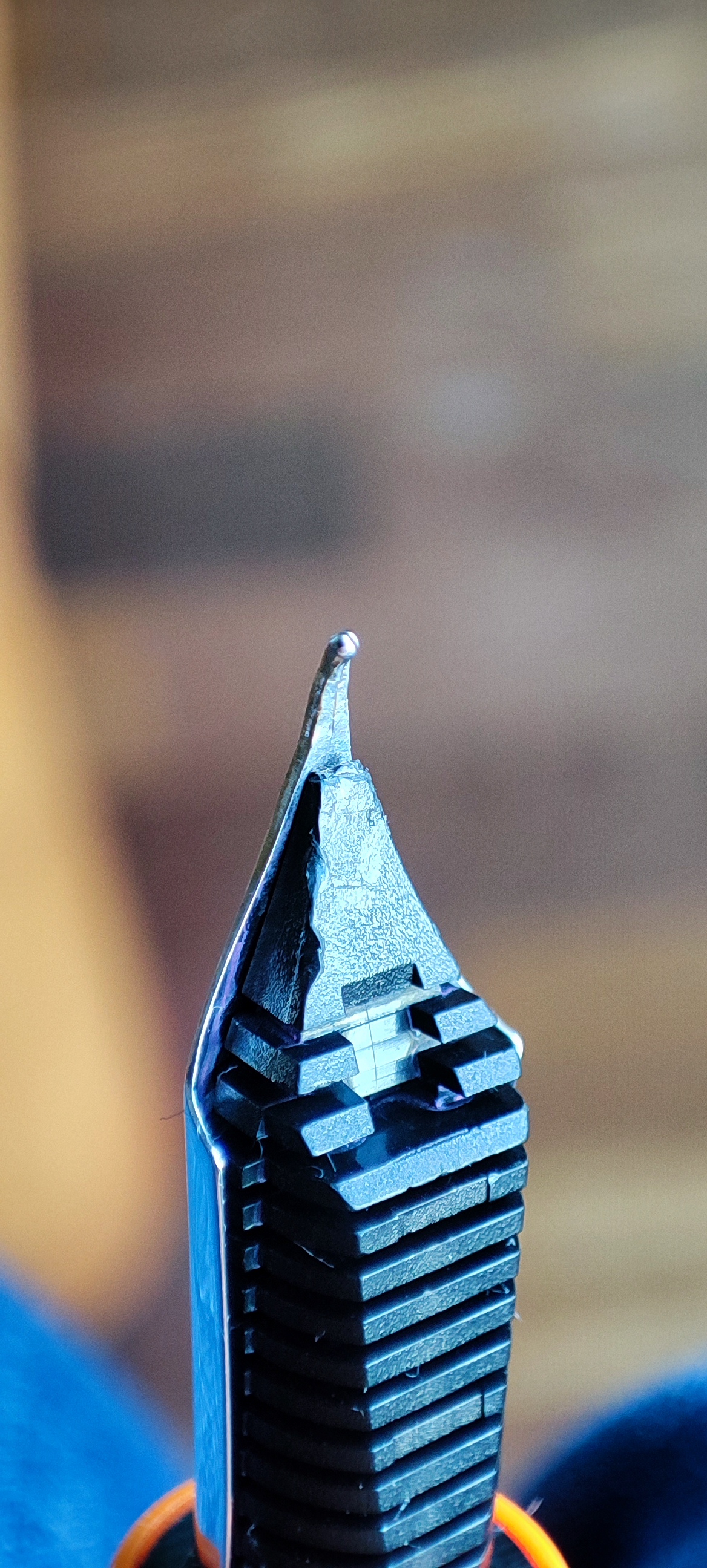 su qualche pennino ci ho messo mano anche io con risultati poco soddisfacenti ma sempre usando le pinzette in ottone, quei segnacci mi sembrano di pinze di quelle coi dentini sicuramente non piatte , boh sbalorditivo :crazy: