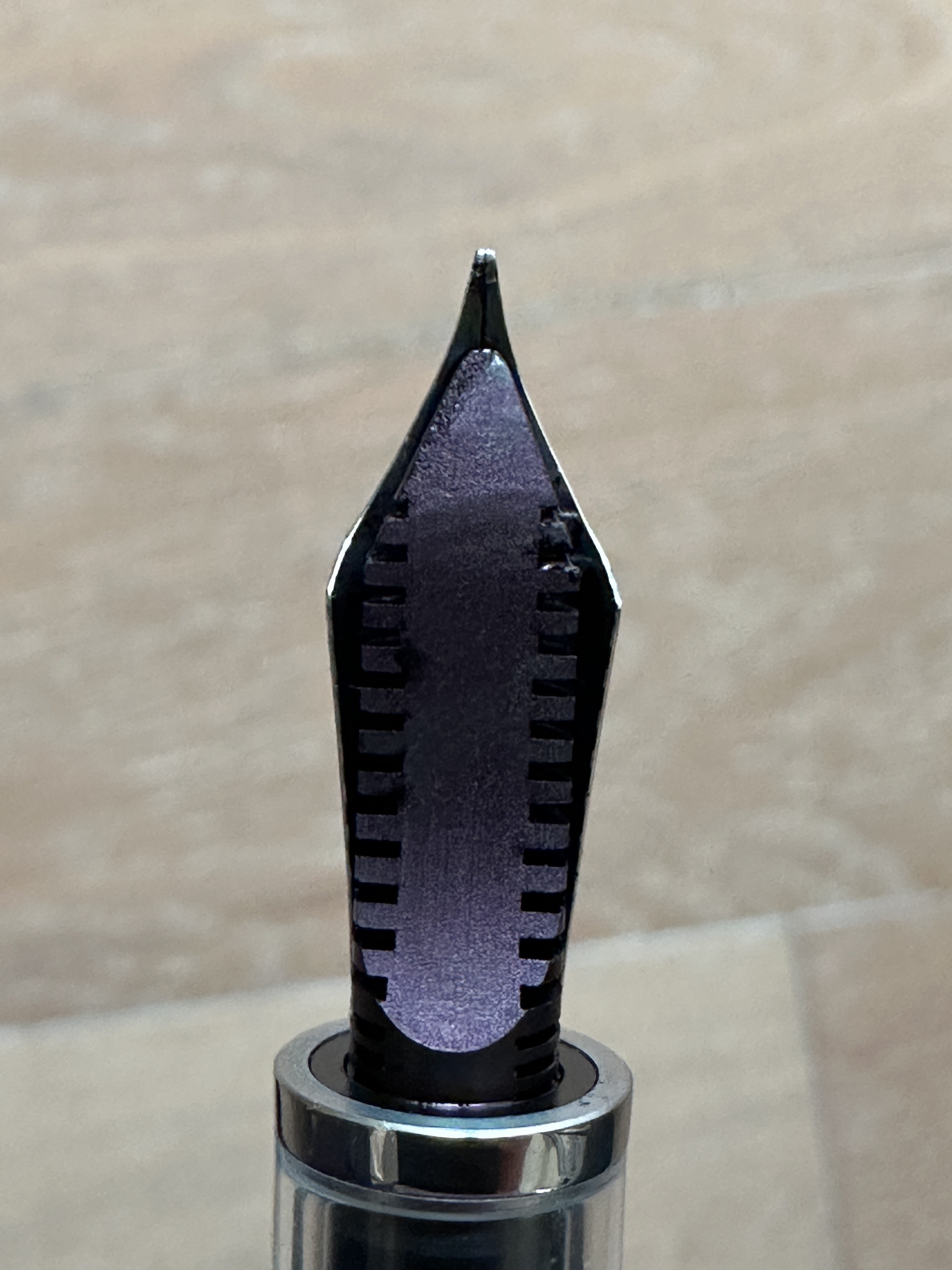 L’acciaio in-house non esiste sono marchiati col logo dell’azienda e maneggiati un po’ da Salvatore Matrone per migliorarli un po’. Personalmente l’acciaio CSI fine che ho è probabilmente il mio pennino preferito. Ora ho preso un Fude e mi sto divertendo moltissimo, l’architect è ottimo, insomma anche con l’acciaio c’è molta qualità.