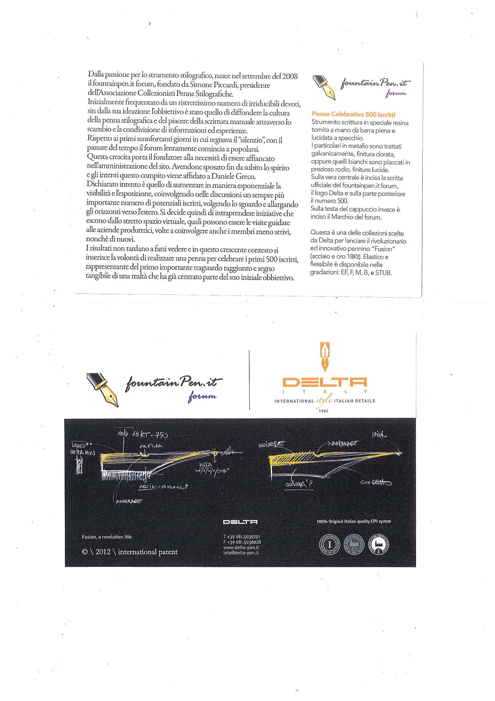 E' un'ottima stilografica, anche imponente. La prima sulla quale Delta sperimentò il pennino "fusion", a quanto mi consta.