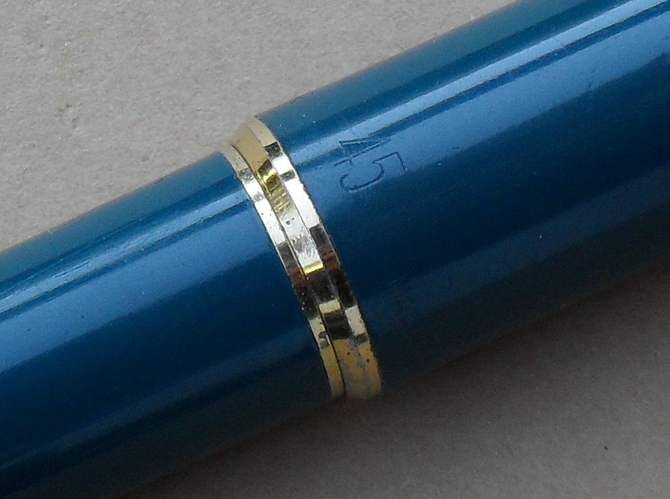 Parker 45 De Luxe - teal blue - pre 1970 - 45 engraving.JPG