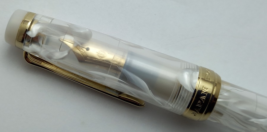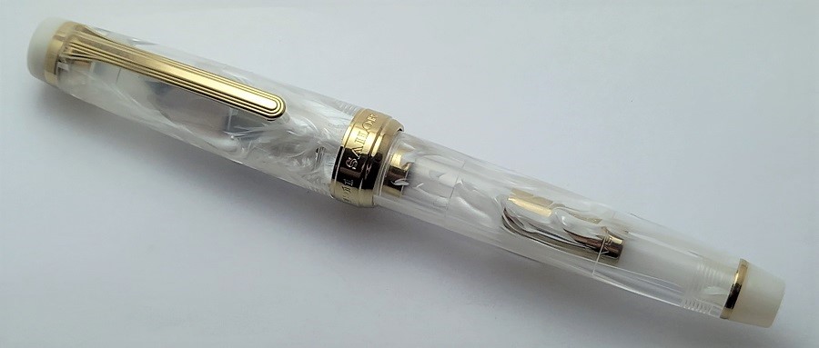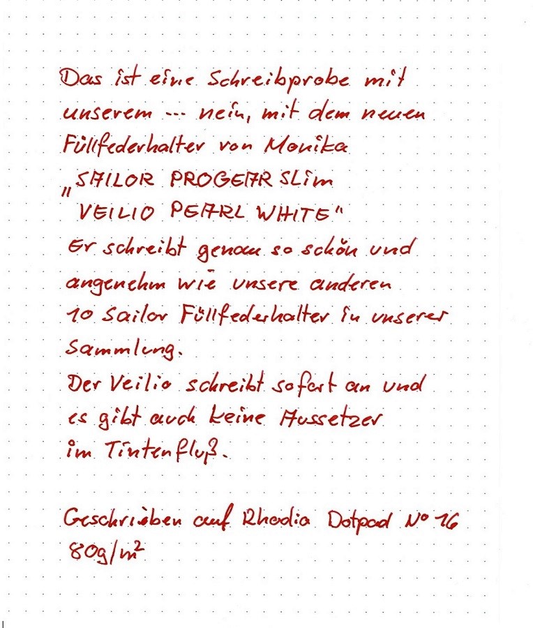. .Questo è un campione di scrittura con il nostro... no, il nuovo Sailor Füllederhalter di Monika. ProGear slim Veilio Pearl White.