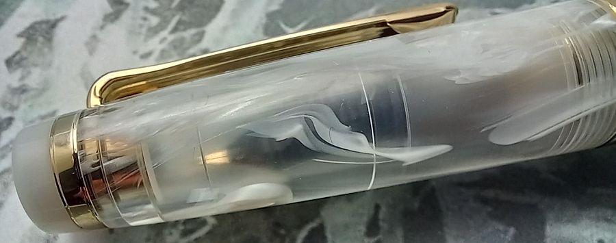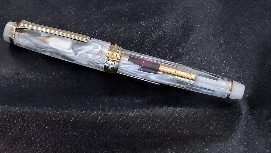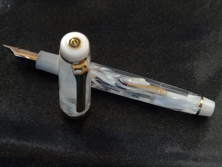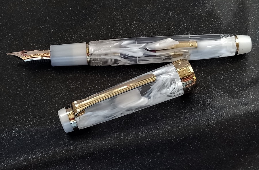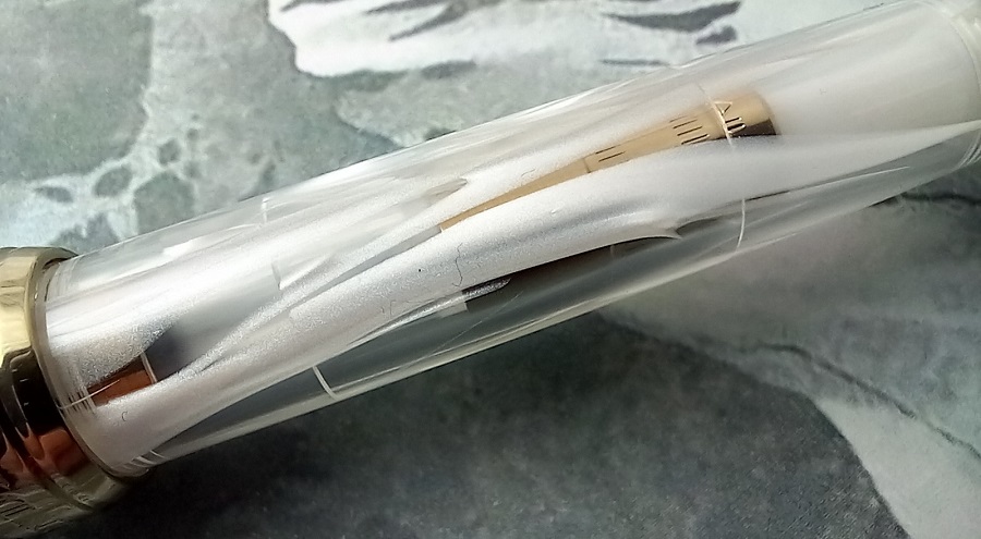 Ogni stilografica diventa unica grazie al fusto trasparente con diversi veli bianchi.