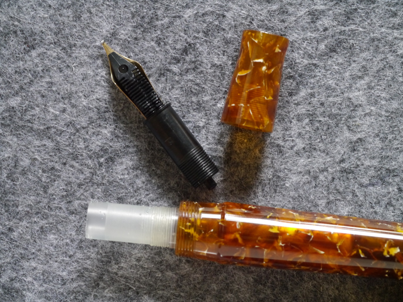 Ho estratto il pennino, e poi ho svitato la sezione, anch'essa contenente parte di questa sorta di colla siliconica.