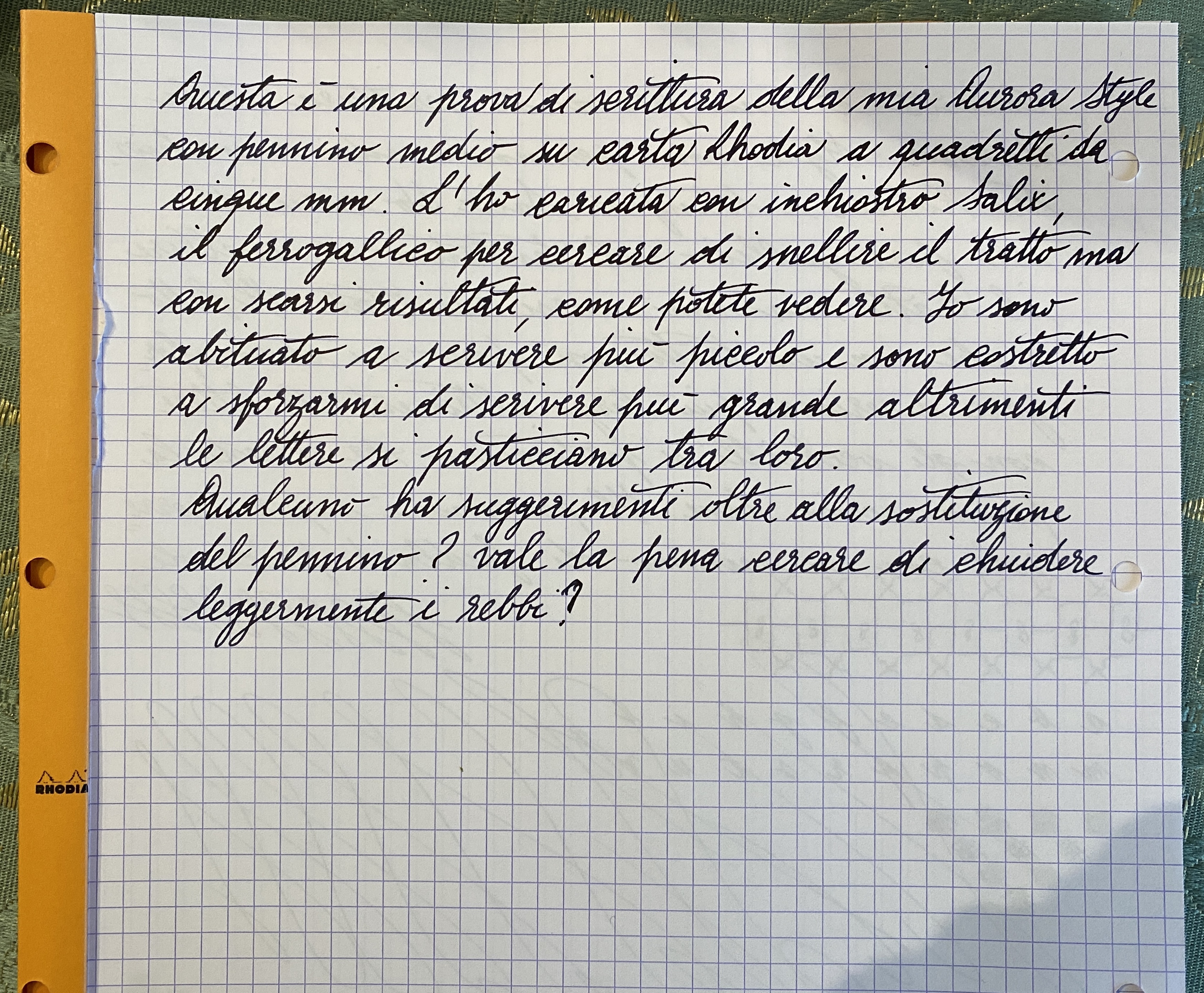 Ciao, la mia con pennino M scrive così, a occhio sembra più abbondante rispetto a quella di Esme. La prova l’ho fatta con il Salix. Leggendo questo post mi è ri venuta voglia di usarla ma proprio non mi ci trovo. Mi devo costringere a scrivere più grande. Secondo voi ha senso provare a stringere un pelo i rebbi con la dovuta delicatezza ? :wave: