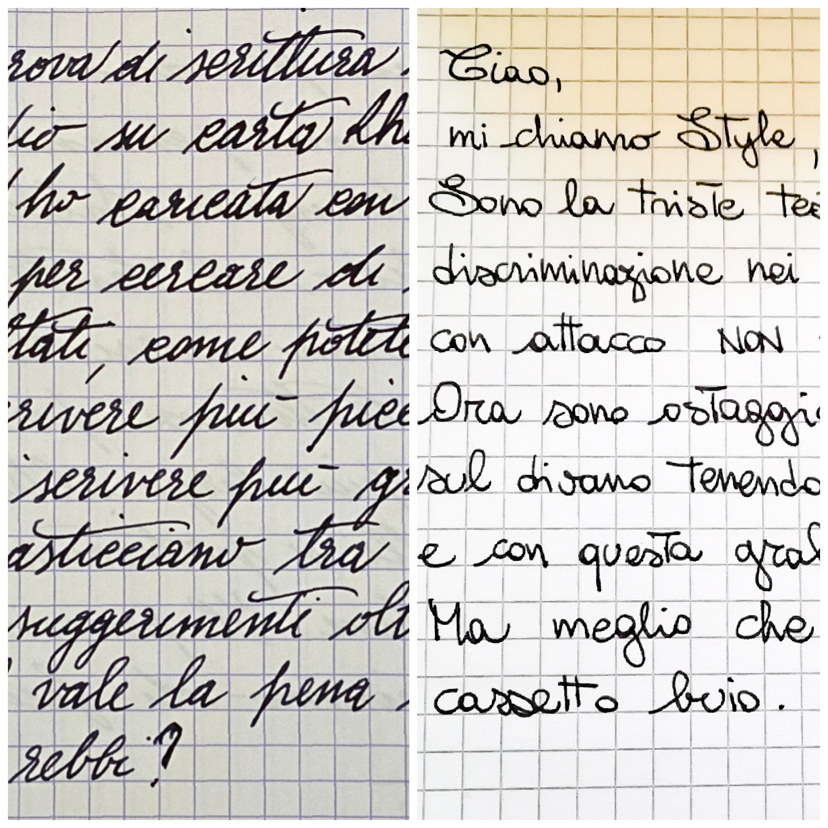 Grazie Esme, a me è sembrato così perché nel tuo scritto hai messo le lettere lunghe (L F B T…) all’interno del quadratino. Io non sono riuscito. Le elle venivano tutte chiuse e anche le bi. Per questo ho avuto questa sensazione, ma magari sbaglio. Resta il fatto che mi risulta scomodo e il risultato finale non mi soddisfa. Raccolgo il tuo suggerimento e lascio stare il pennino. Poi magari trovo qualcuno che desidera fare cambio. :wave:
