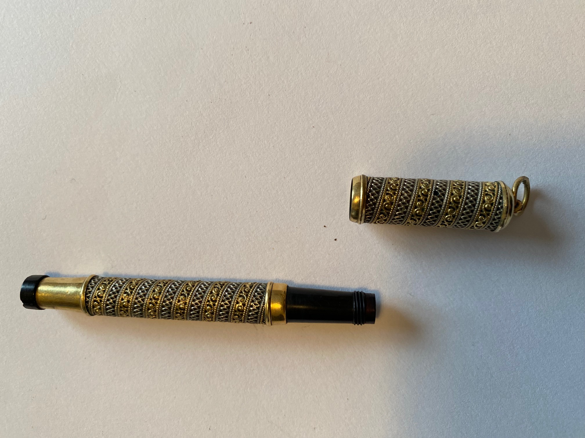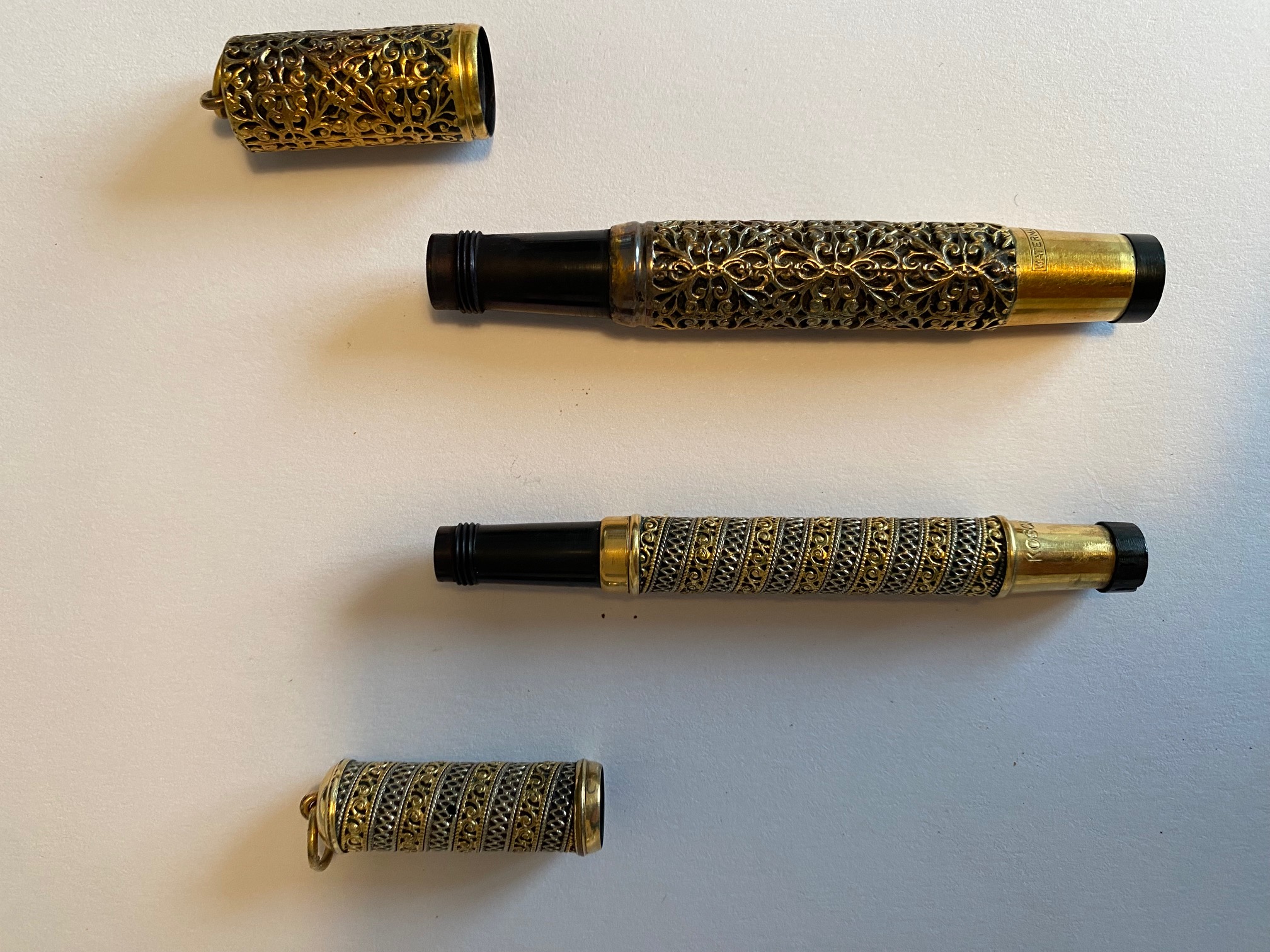 Mi spiace dirvi che non sono un appassionata come voi - anche se le belle penne mi piacciono molto - ma solamente una persona che cerca informazioni : ho da decine d'anni in casa (erano di bisnonni) queste due penne waterman prive di corpo / pennino. Desideravo sapere se hanno un piccolo valore oppure zero in quanto incomplete. grazie mille