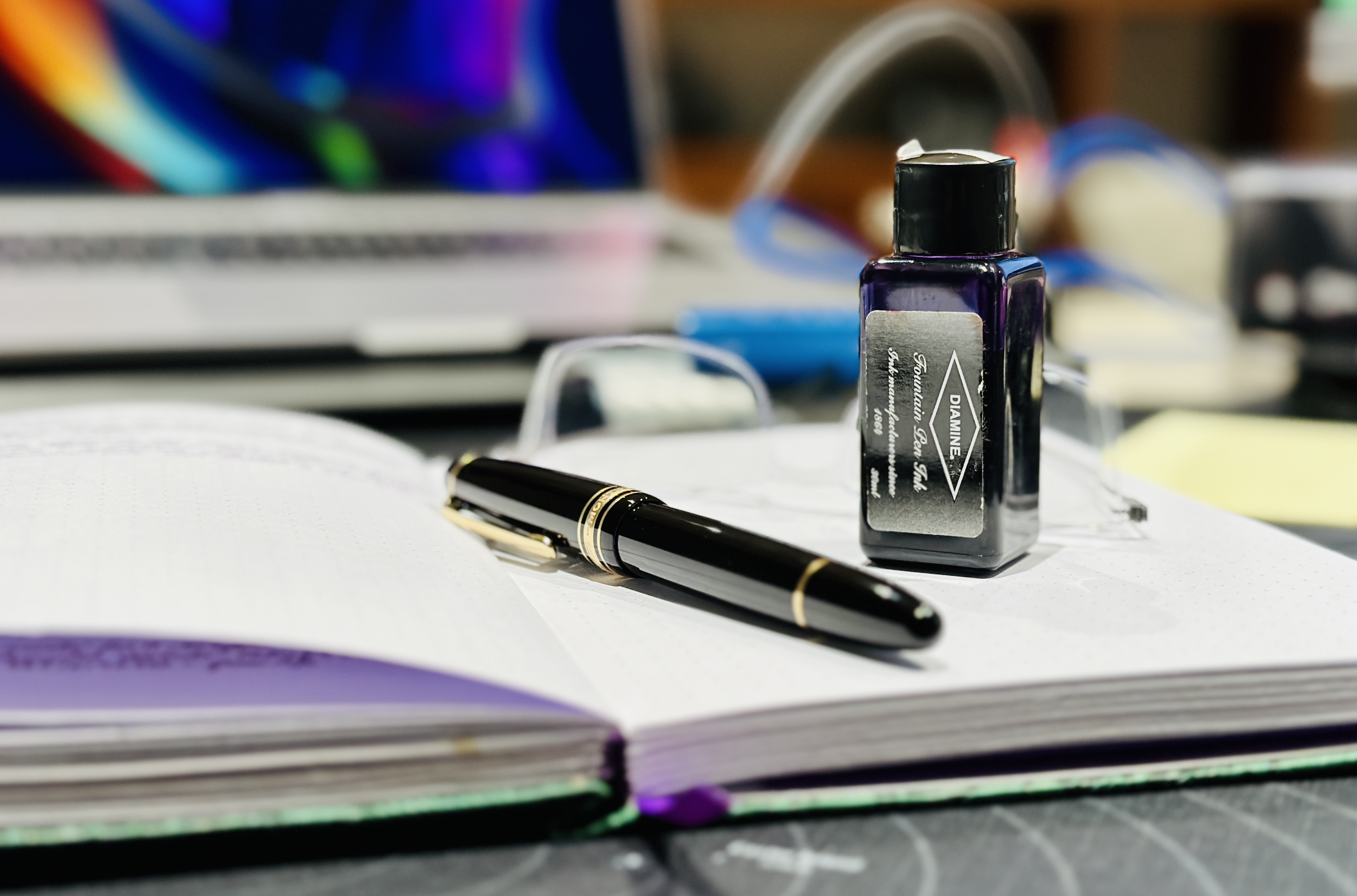 Ho scelto il Damson come inchiostro dell'anno 2023 per il mio registro di allenamento l'ho caricato in una Safari M umbra all'inizio dell'anno e per adesso va benissimo no false partenze no salti no nib creeping scrive e basta lo userò per tutto l'anno vedremo. Ho notato dalla foto che la boccetta del Damson fotografata ha l'etichetta vecchia alcuni diamine vecchi tendono a seccarsi sui pennini e a non far ripartire e saltare le penne (per mia esperienza) infatti ultimamente ho buttato le ultime gocce di una boccetta di matador e ho visto che erano presenti dei sedimenti solidi sul fondo, la nuova boccetta di matador ha sensibilmente migliorato il comportamento potrebbe essere anche questo?