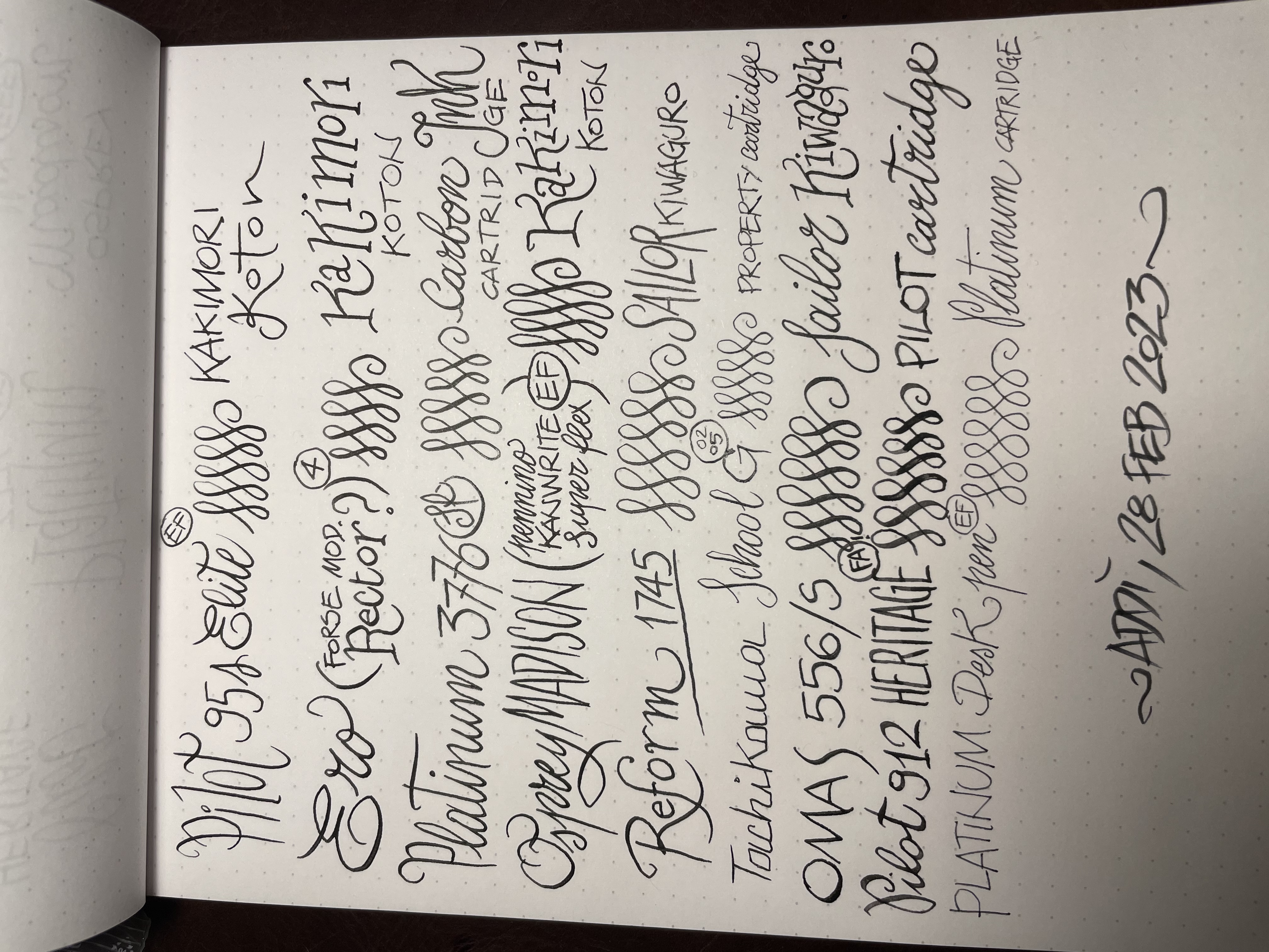 Ciao Maruska, no almeno non a quelli in mio possesso. Possiedo solo due Sailor, una con pennino in acciaio che è un chiodo (e lo apprezzo in certi casi) e un 21k che sulla carta è HF (hard-fine) in realtà è abbastanza docile e più che molleggiato (non flessibile però). Io scrivo leggerissimo e ha un tratto fine fine che mi piace molto, scrive solo con il pensiero ma se premi con un po’ (senza esagerare) di decisione il tratto si allarga e il feedback si fa più deciso, ma è un bisturi e penso che sia normale così. Il pennino della Platinum invece è un soft fine ma è meno docile del Sailor, varia di più ma richiede molta più forza e ritorna indietro in maniera più nervosa. Diciamo che per avere risultati carini ci vuole più mano e io, che non ho dimestichezza con i flex, non ci tiro fuori nulla. Nella scrittura con mano leggera sembra un NON soft, non si piega manco a pregarlo e ha un feedback tutto suo a mio parere più secco rispetto al Sailor… devono piacere i feedback decisi altrimenti può dar fastidio. Spero di aver reso l’ideaMaruska ha scritto: ↑lunedì 6 febbraio 2023, 19:50ciao Iridium, questo pennino assomiglia a quelli Sailor?Iridium ha scritto: ↑lunedì 6 febbraio 2023, 19:42 Ne ho diverse, troppe, ma al momento sto usando questa, la fidata 3776 che ho un po’ trascurato, poi puntualmente quando la uso mi chiedo perché l’abbia trascurata visto che non perde un colpo manco a volerlo fare di proposito e ha quel feedback particolare, di carattere…