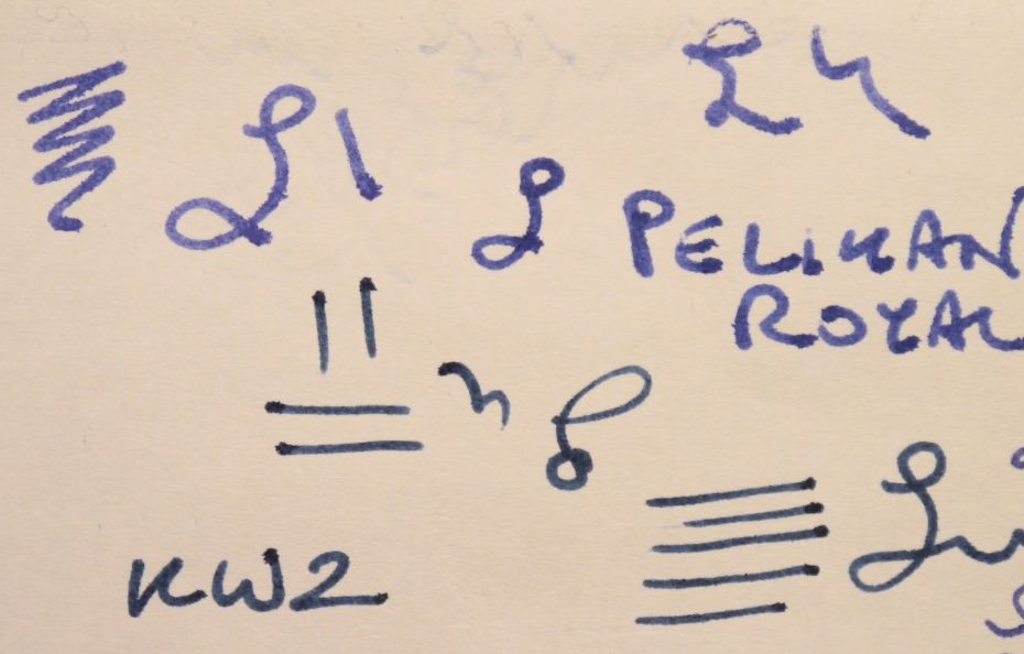 Lo scarabocchio è fatto con due pennini identici (M200 M), quindi abbastanza spessi di tratto e abbondanti di flusso