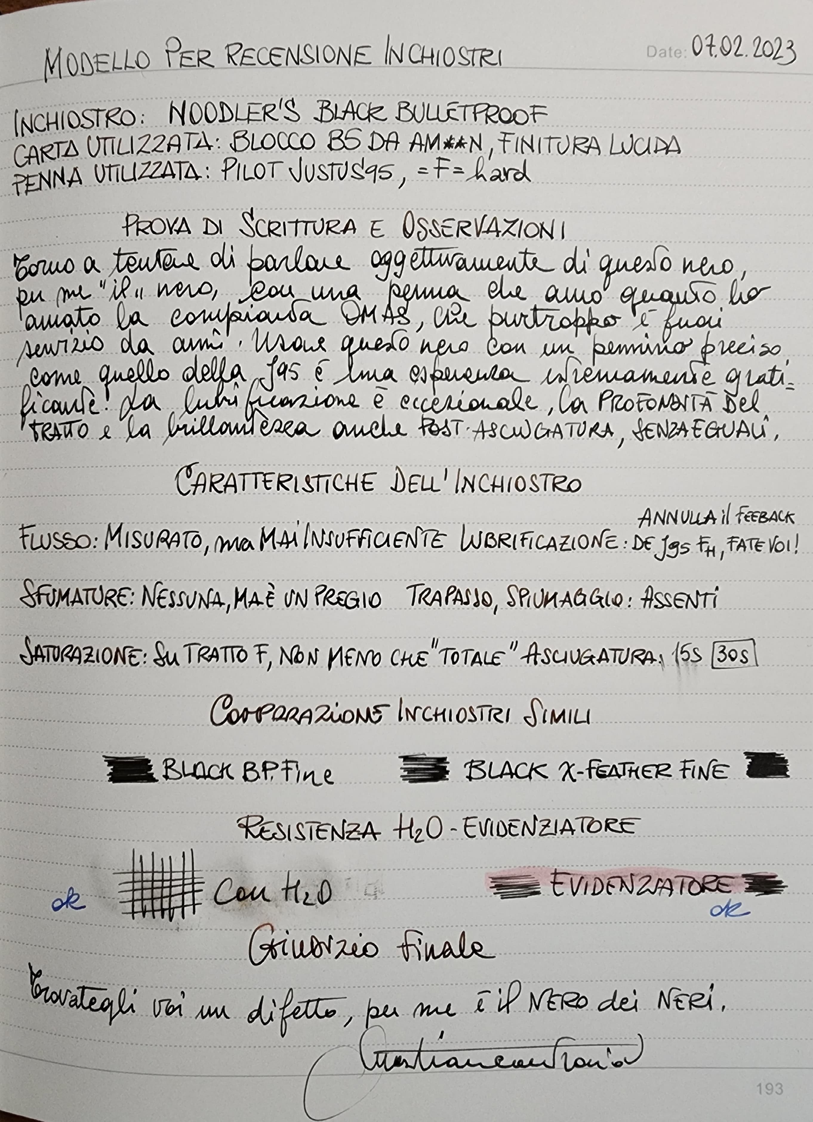 bcontrario ha scritto: martedì 7 febbraio 2023, 22:06 dopo otto anni torno a parlare di questo inchiostro che io prediligo tra i neri, caricato su una oenna eccezionale come la Justus95 tratto Fine, settata in H.