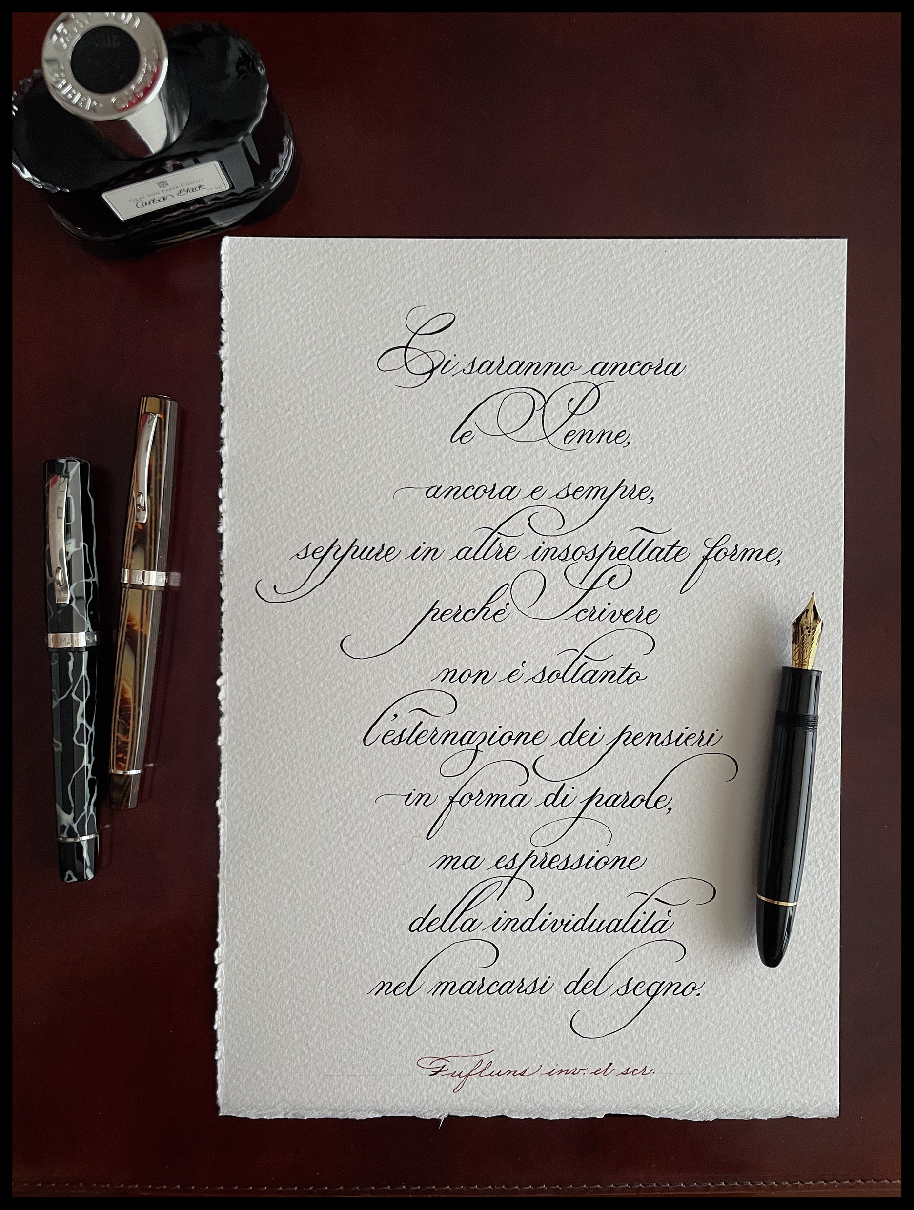 Carta Garro, per acquarello, circa 300 grammi. Inchiostro Graf von Faber Castell Carbon Black. Penna Montblanc 149 Calligraphy.