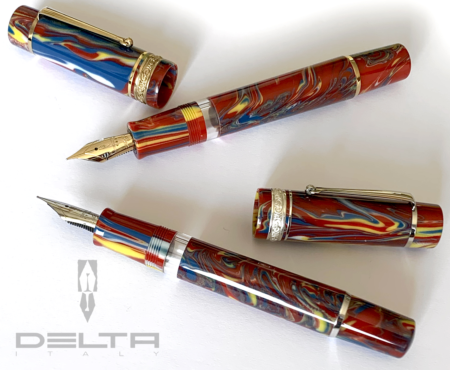 Dopo 5 anni di chiusura, Delta ha potuto rientrare in possesso del suo magazzino; e hanno smontato, revisionato, riassemblato, montato un pennino nuovo, testato tutte le penne una per una, di questi pochi pezzi di Dolcevita Oro, sia con finiture dorate che rodiate.