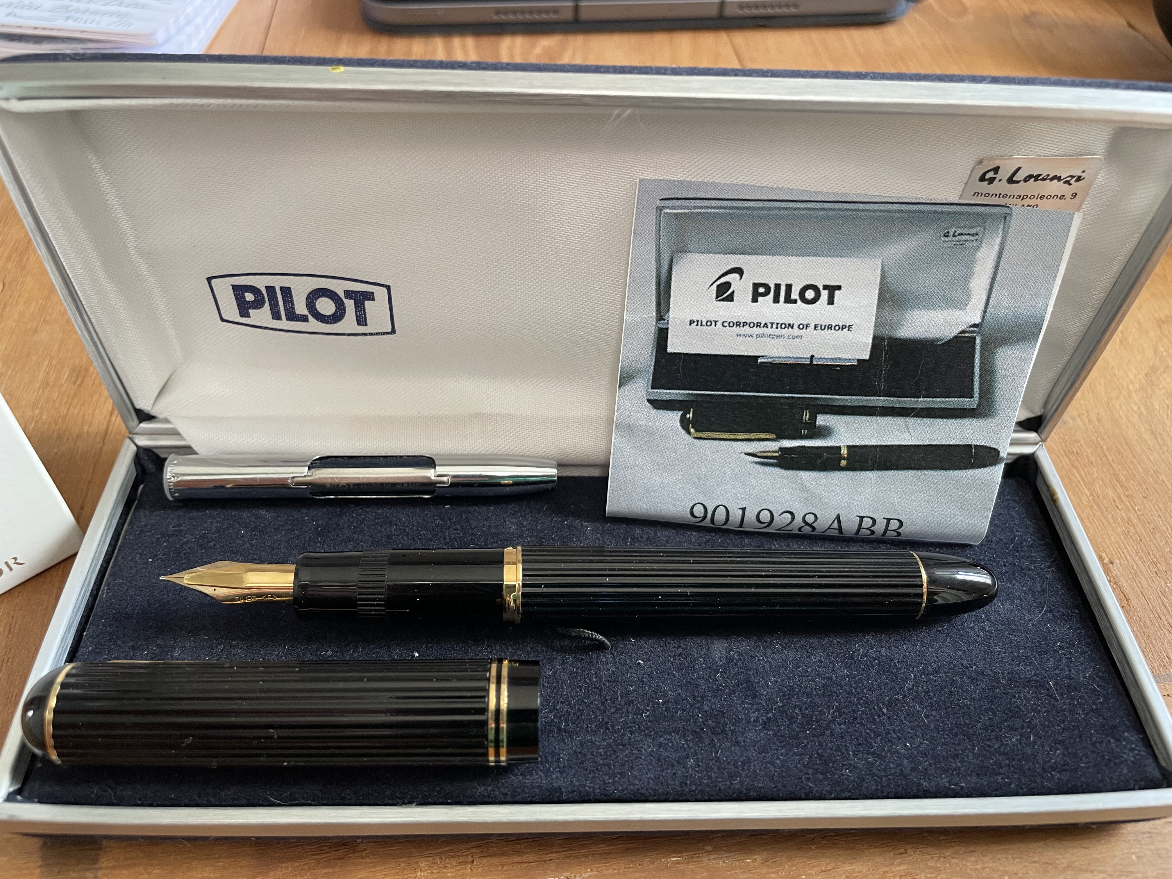 Tornando a casa questa mattina in un negozio che vende moda ho trovato questa vecchia Pilot NOS e mai inchiostrata. Il negozio anni fa ha rilevato il magazzino Lorenzi, storico coltellinaio di via Montenapoleone a Milano, purtroppo chiuso diversi anni fa.