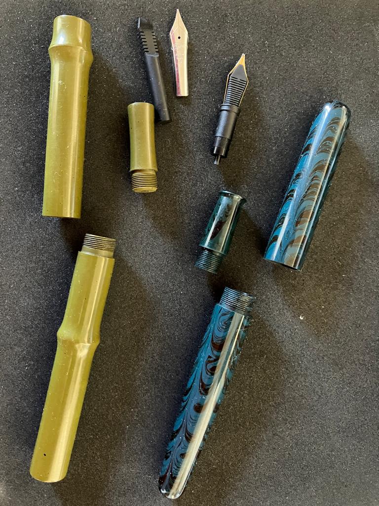 e una bamboo, nel mio caso con pennino Bock e alimentatore in ebanite, inseriti a frizione, su specifica richiesta.