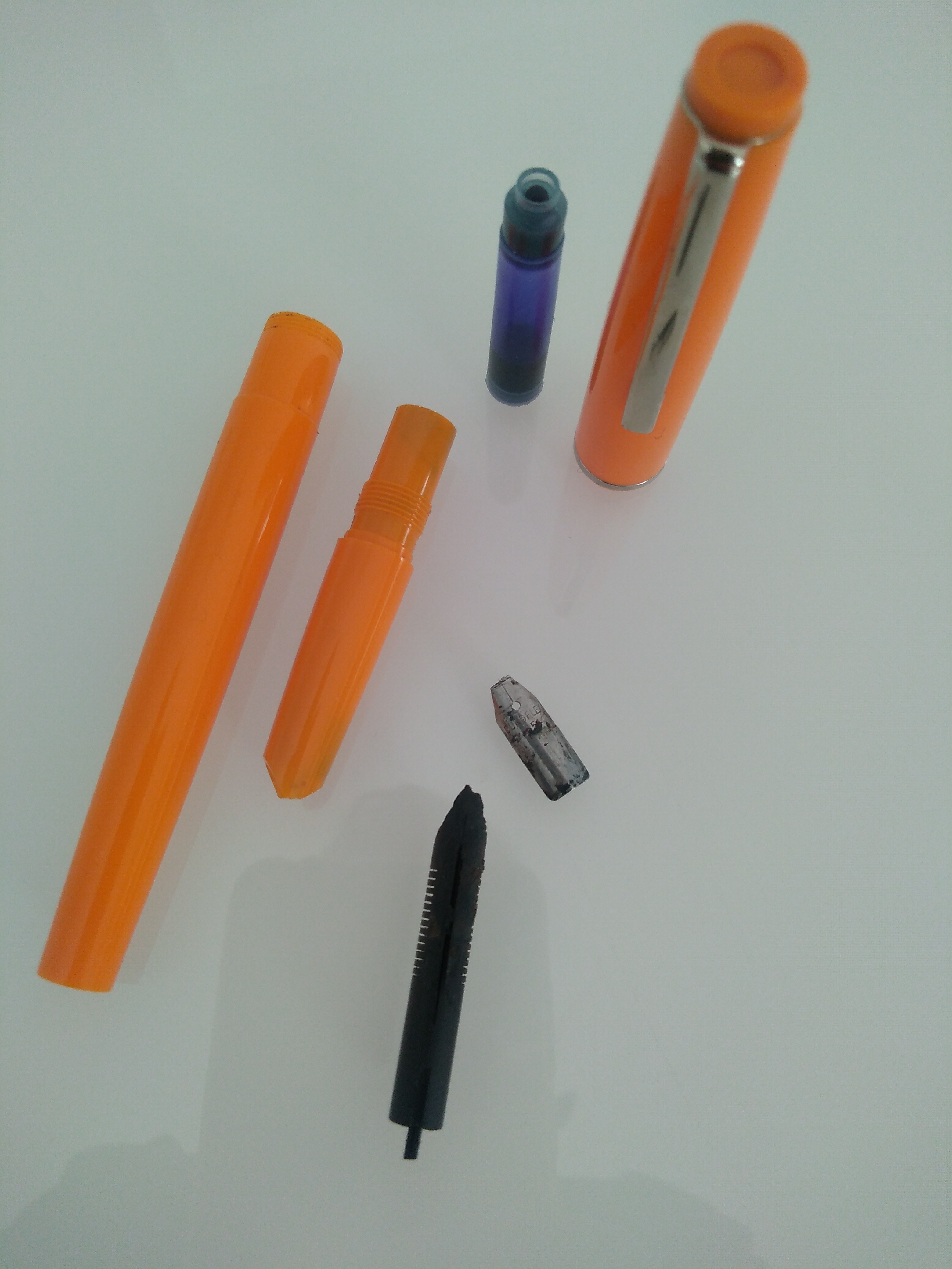 Ovviamente ho dovuto estrarre il pennino dal davanti (a tirare), non é possibile farlo dal fondo.