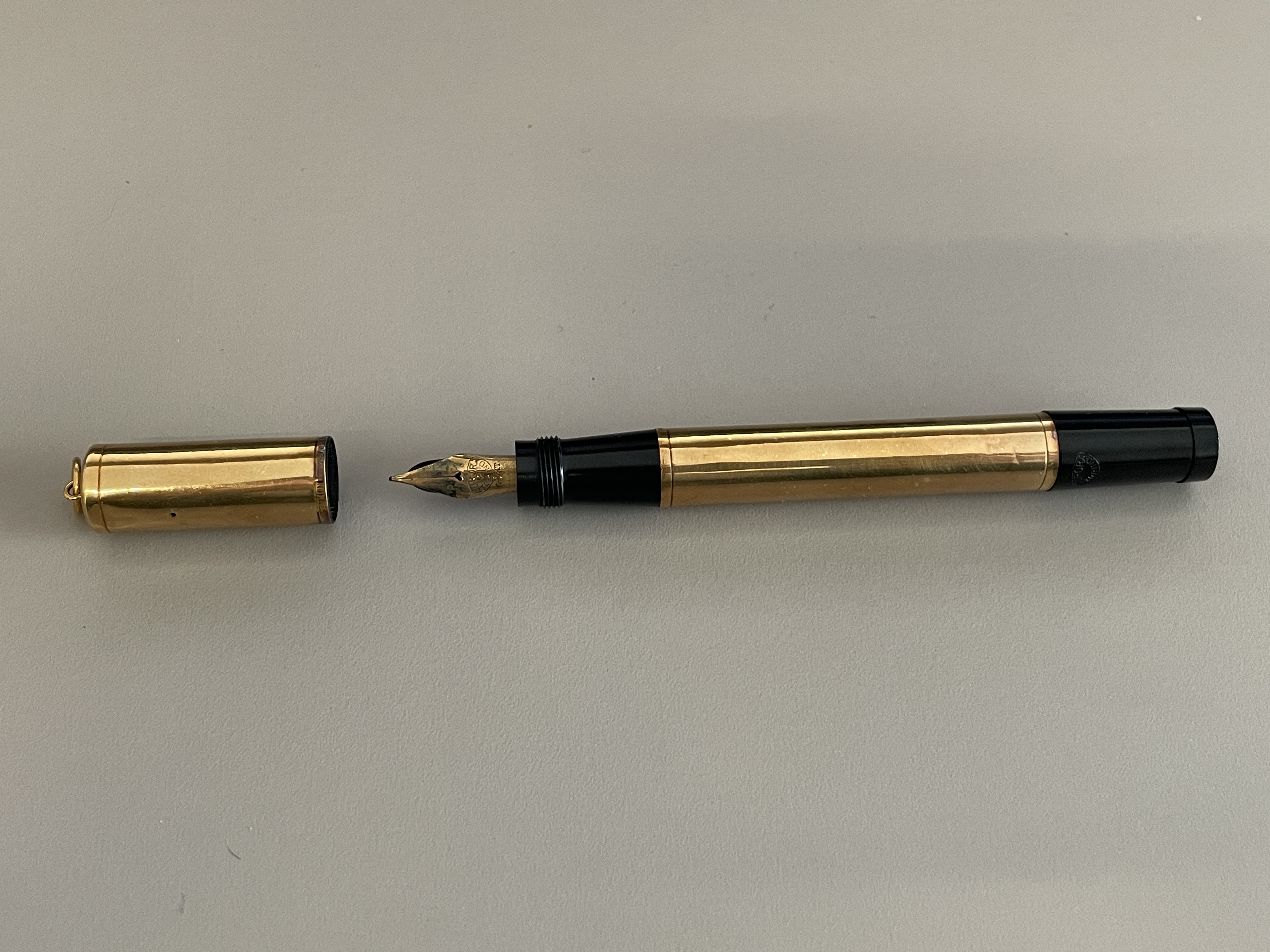 La penna ha caricamento EYEDROPPER (a contagocce) e meccanismo di rientro a spirale. E’ in ottimo stato, nonostante i circa 100 anni di vita. Forse ci vorrebbe una leggera lucidata.