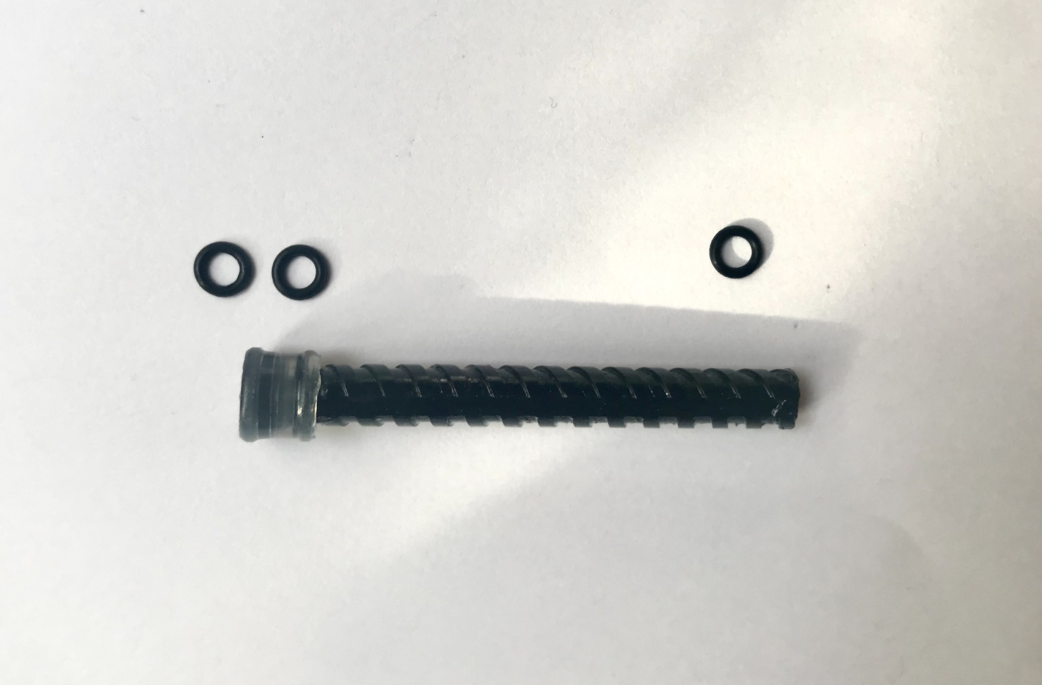 2- inserire un o-ring sulla superficie esterna del gommino (h= 6 mm), cioè quella che scorre all'interno del fusto; questo presenta come due estroflessioni/labbra all'inizio e alla fine dell'altezza del gommino che sono quelli che fanno tenuta.