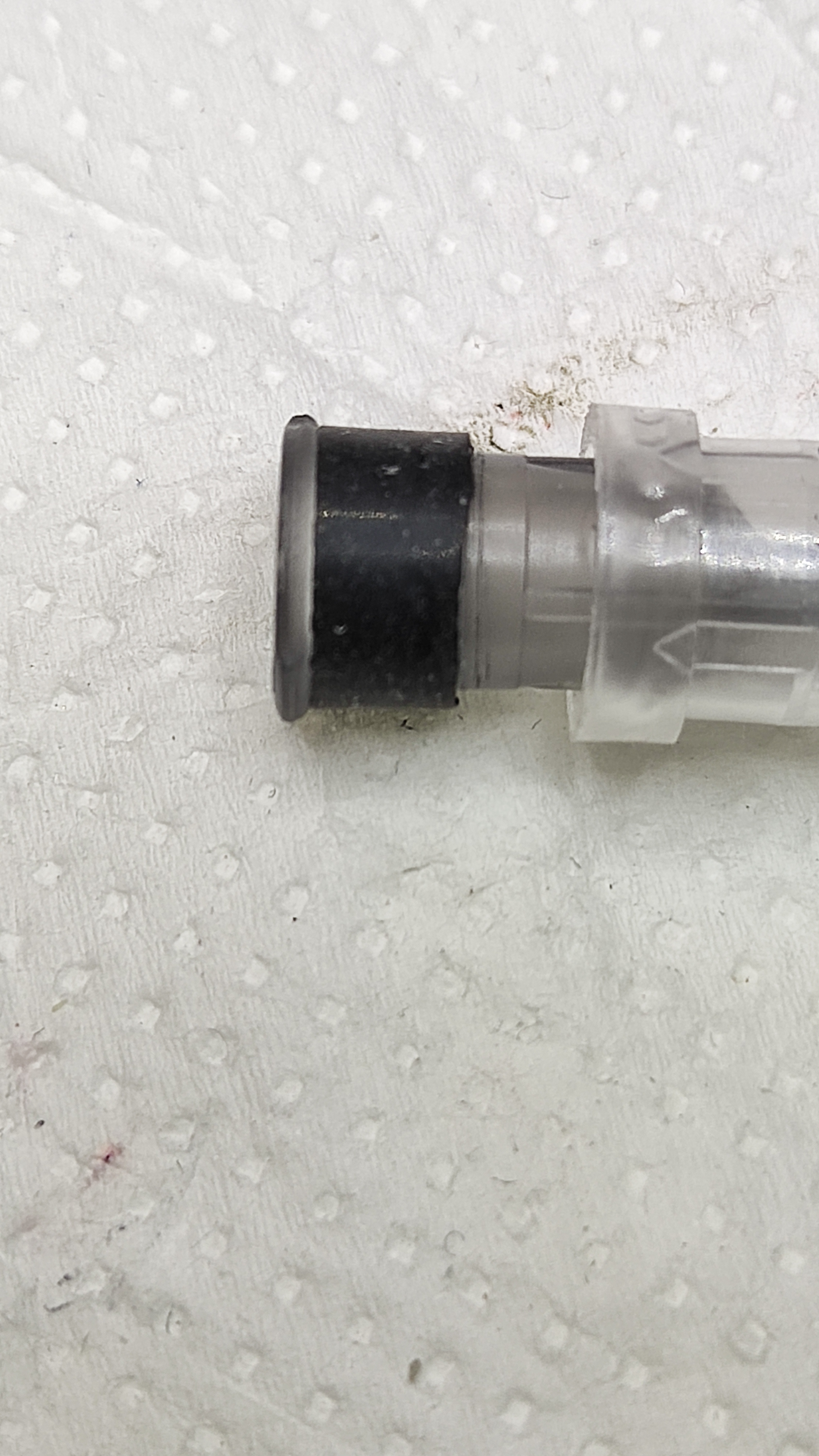 Qua sembrerebbe da imputare più al gommino del pistone che alla natura della resina.