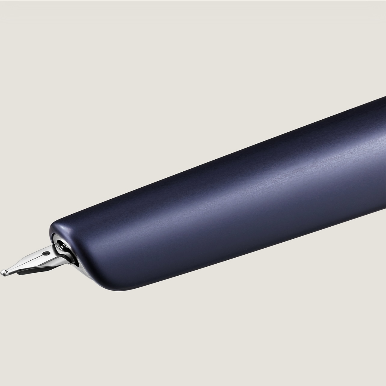 Penna stilografica in alluminio anodizzato e acciaio inossidabile spazzolato sulla parte inferiore.