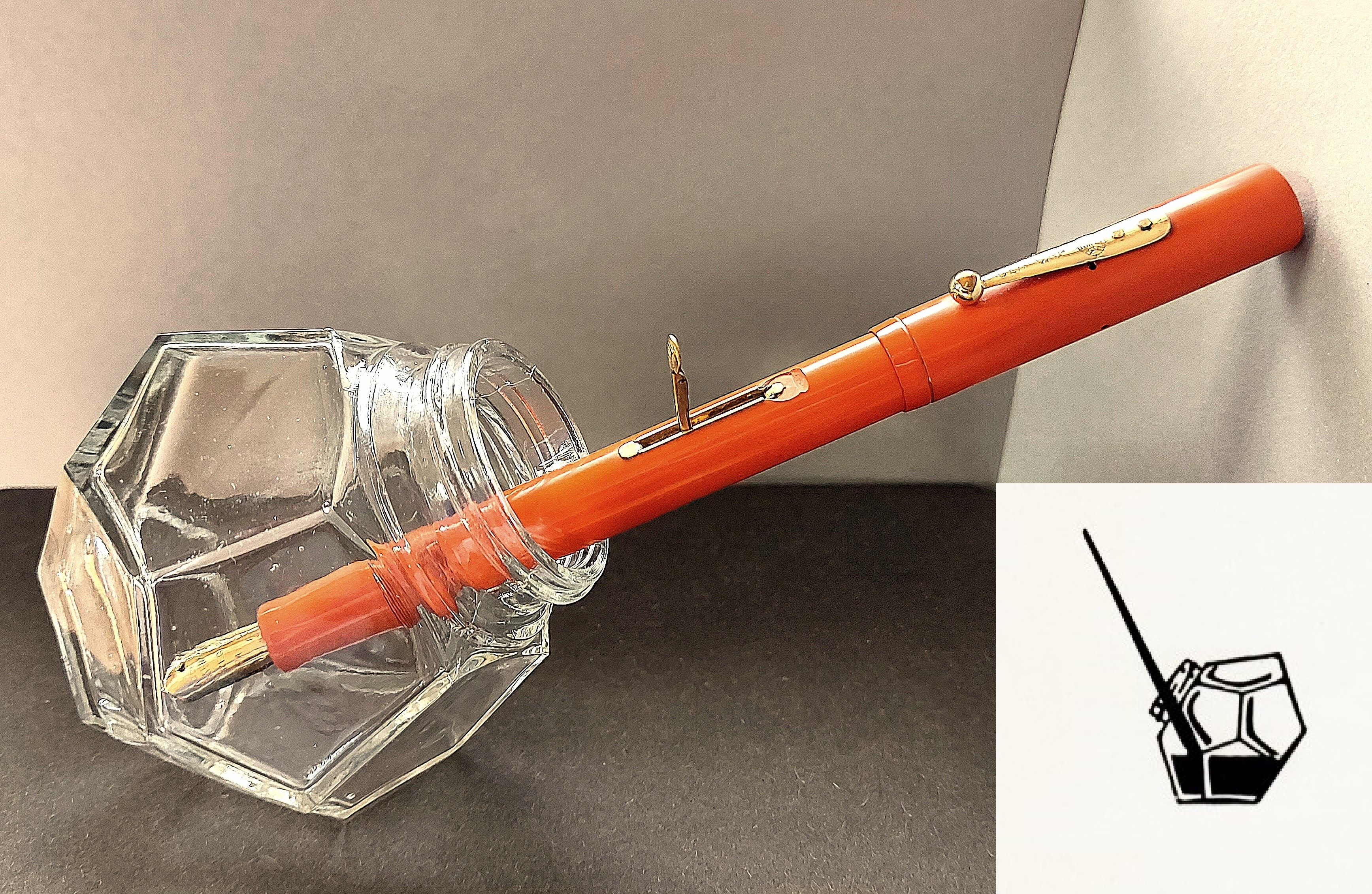 Quindi, portando lo stesso nome, neppure volendo si sarebbero potuti scindere i destini dell’alimentatore (1933) da quelli del calamaio (1935). Grazie alle caratteristiche del caricamento “tip-fill” implementato sulle stilografiche della Casa vendute all’epoca (che, gioverà ricordarlo, richiedeva la sommersione del gruppo scrittura solo fino al foro di sfiato del pennino, e non fino a ricomprendere anche parte della sezione come era/sarebbe prassi con un alimentatore tradizionale), anche l’uso del calamaio omonimo poteva essere associato ad un’idea di pulizia e ordine, promettendo inoltre (ma in subordine) un sostanzioso risparmio grazie alla possibilità di coricamento su una delle facce laterali onde favorire la suzione anche dell’ultima goccia di inchiostro in essi originariamente contenuta.