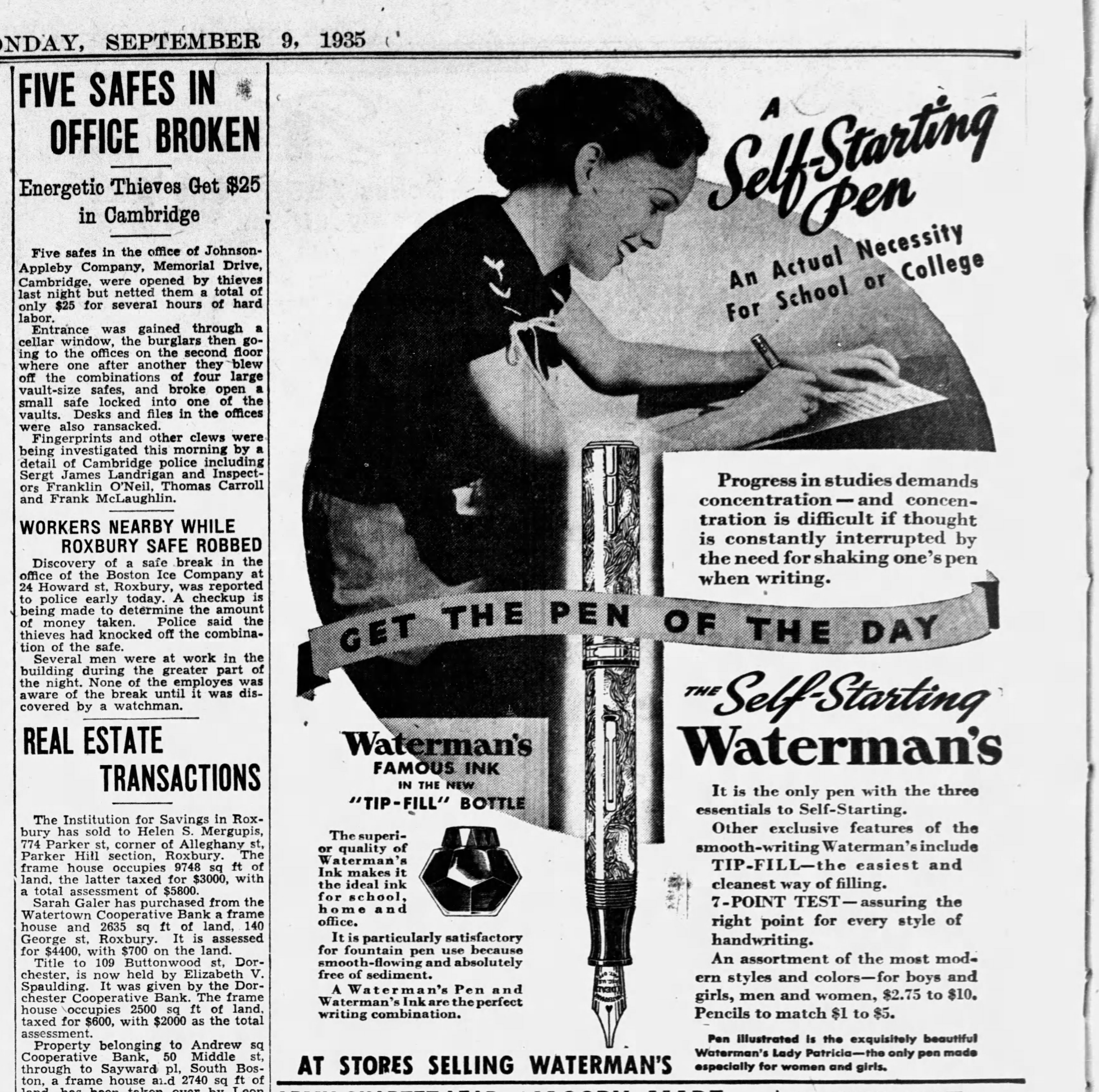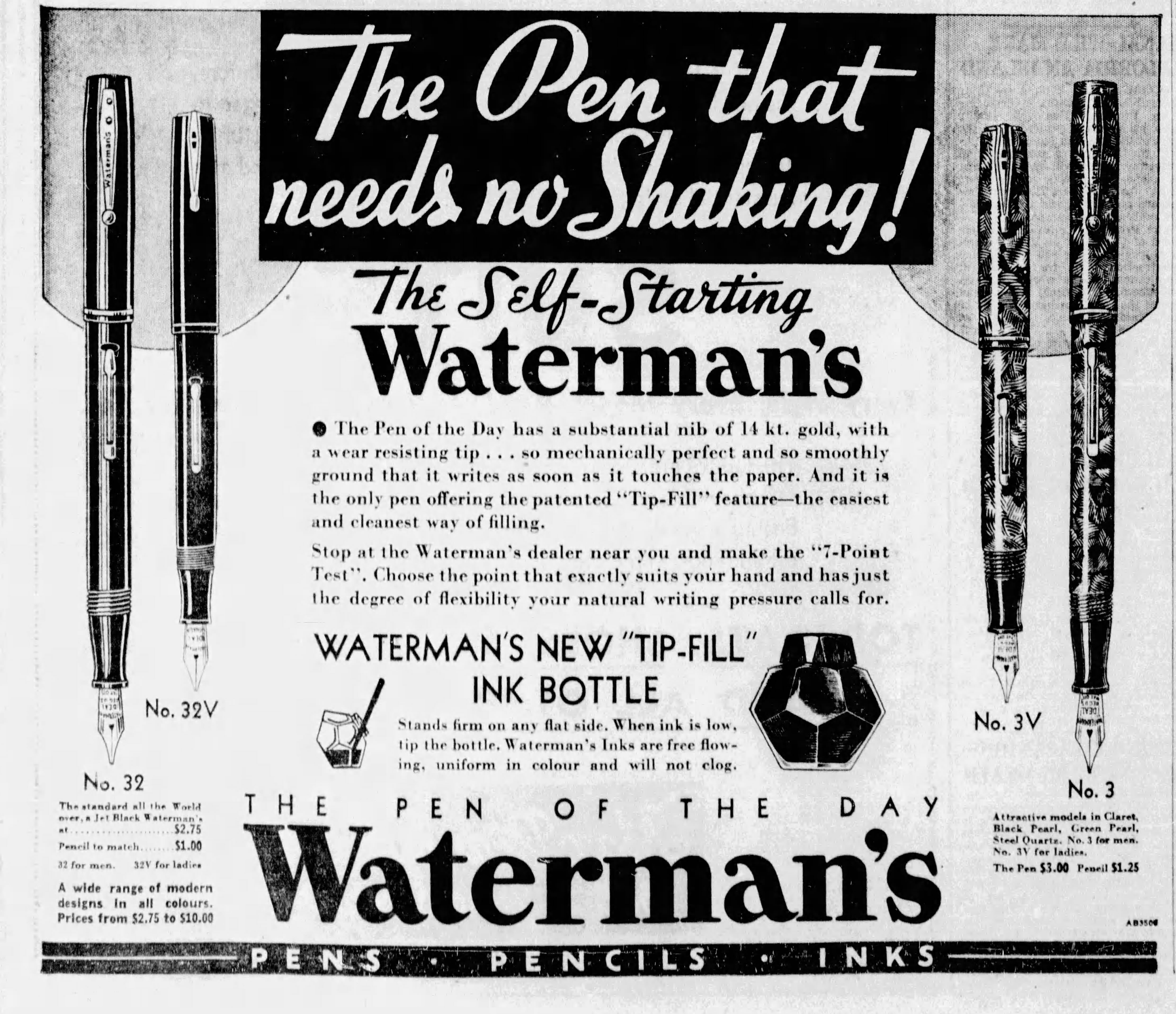 Lo stato dell’arte dei calamai Waterman’s negli USA nell’anno 1936