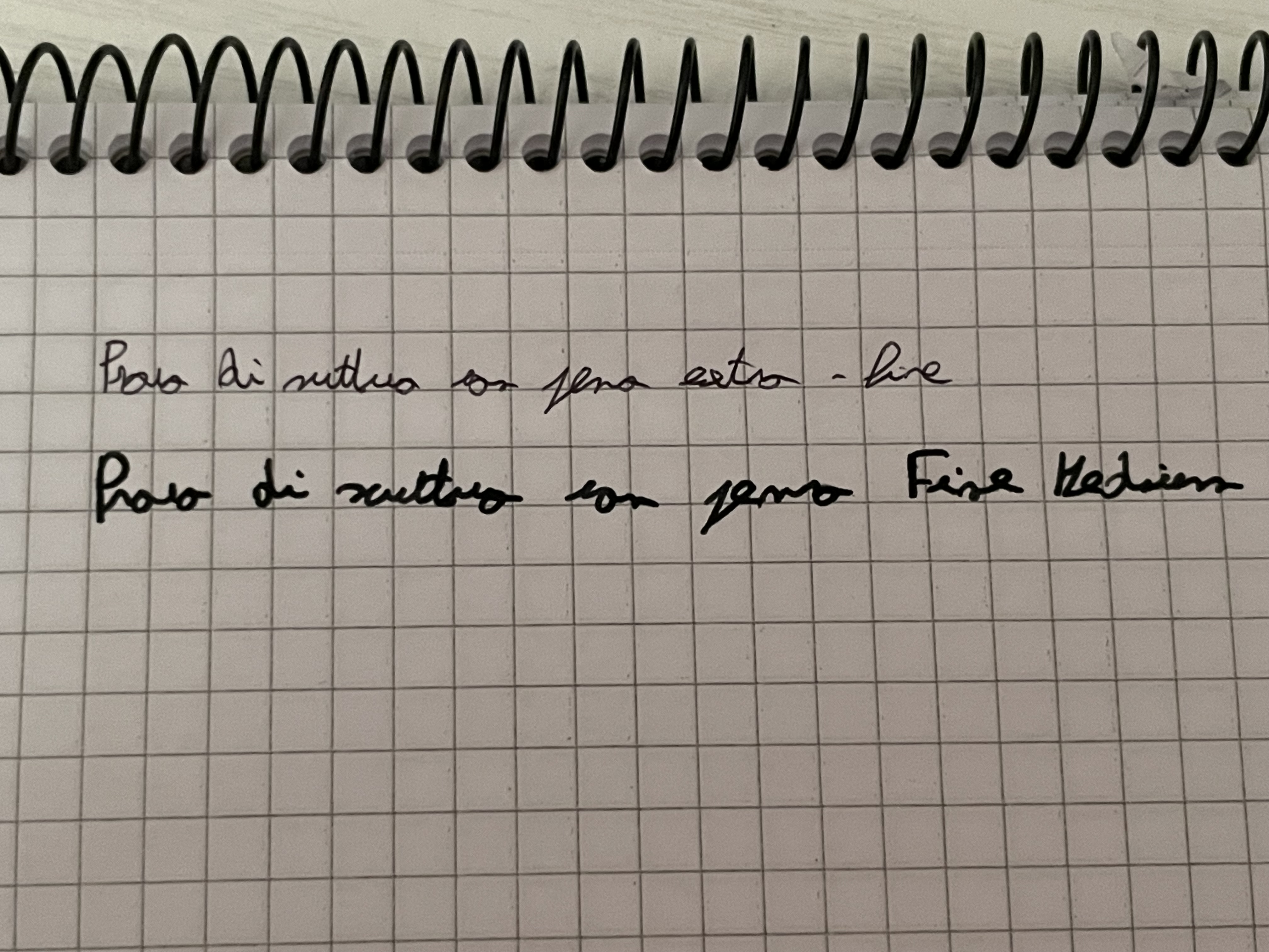 Ti allego una comparazione della mia scrittura effettuata con tratto EF e col FM della Pilot
