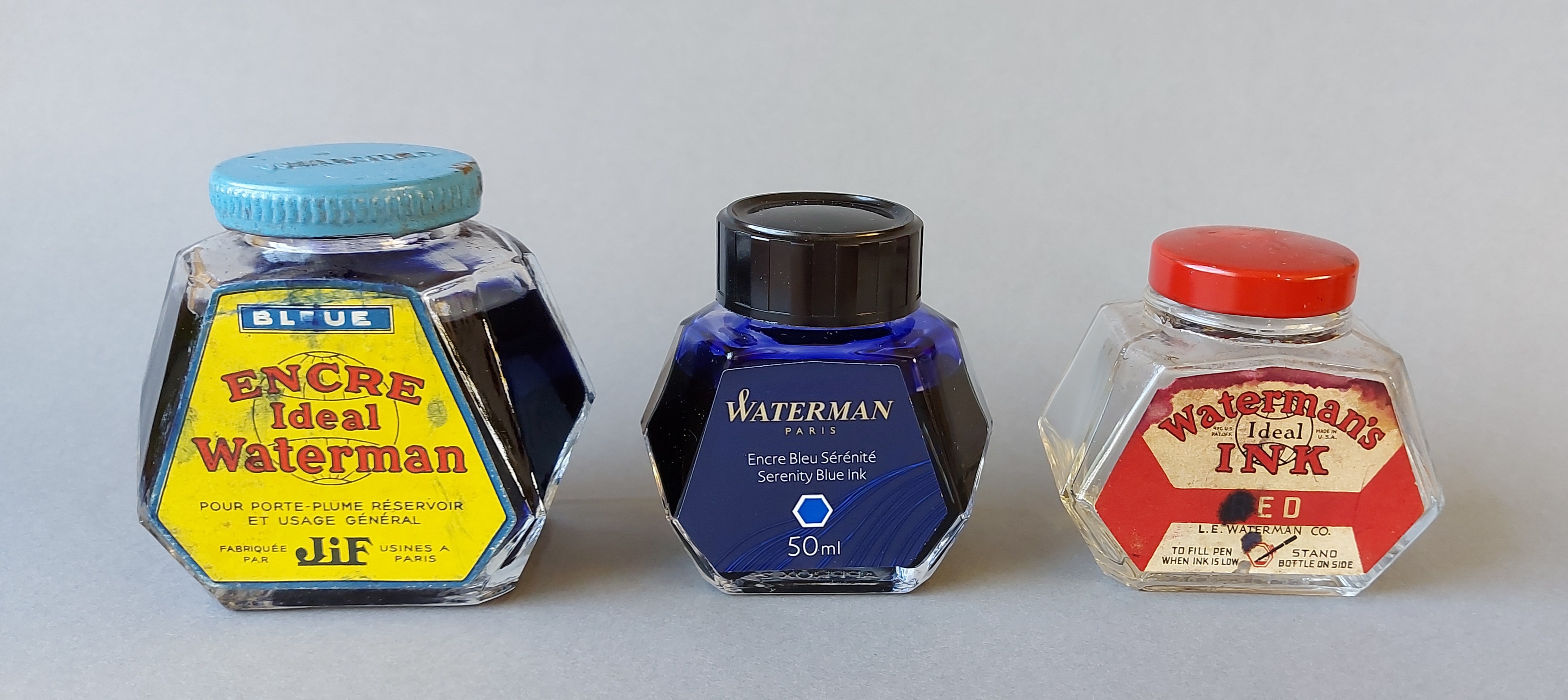 Ad essa ho voluto aggiungere una a mio avviso indispensabile se pur breve trattazione della bottiglia francese che è la diretta progenitrice delle boccette Waterman che tutti abbiamo in casa oggi.
