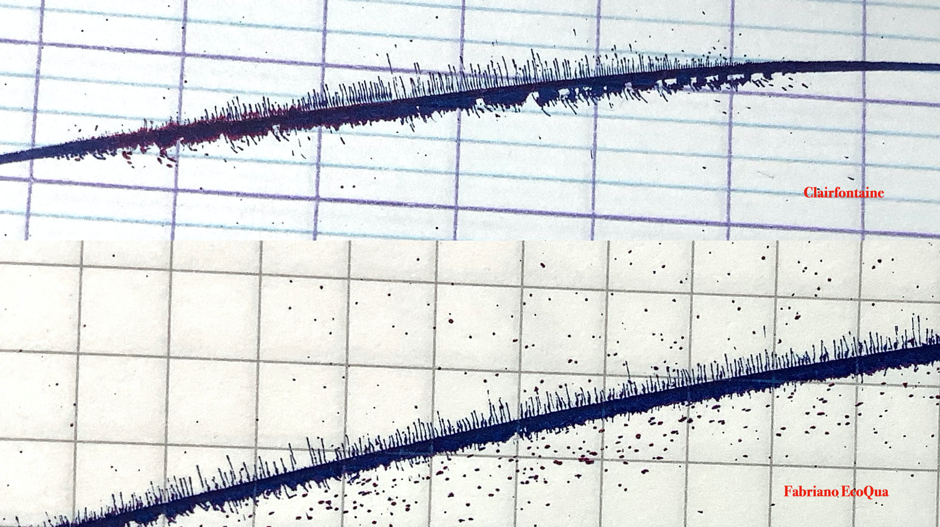 Sulla carta Clairfontaine le rigature sono più strette rispetto alle rigature sulla EcoQua , come se il pennino vibrasse ad una frequenza maggiore su una carta liscia ed a una frequenza minore su carta più ruvida.