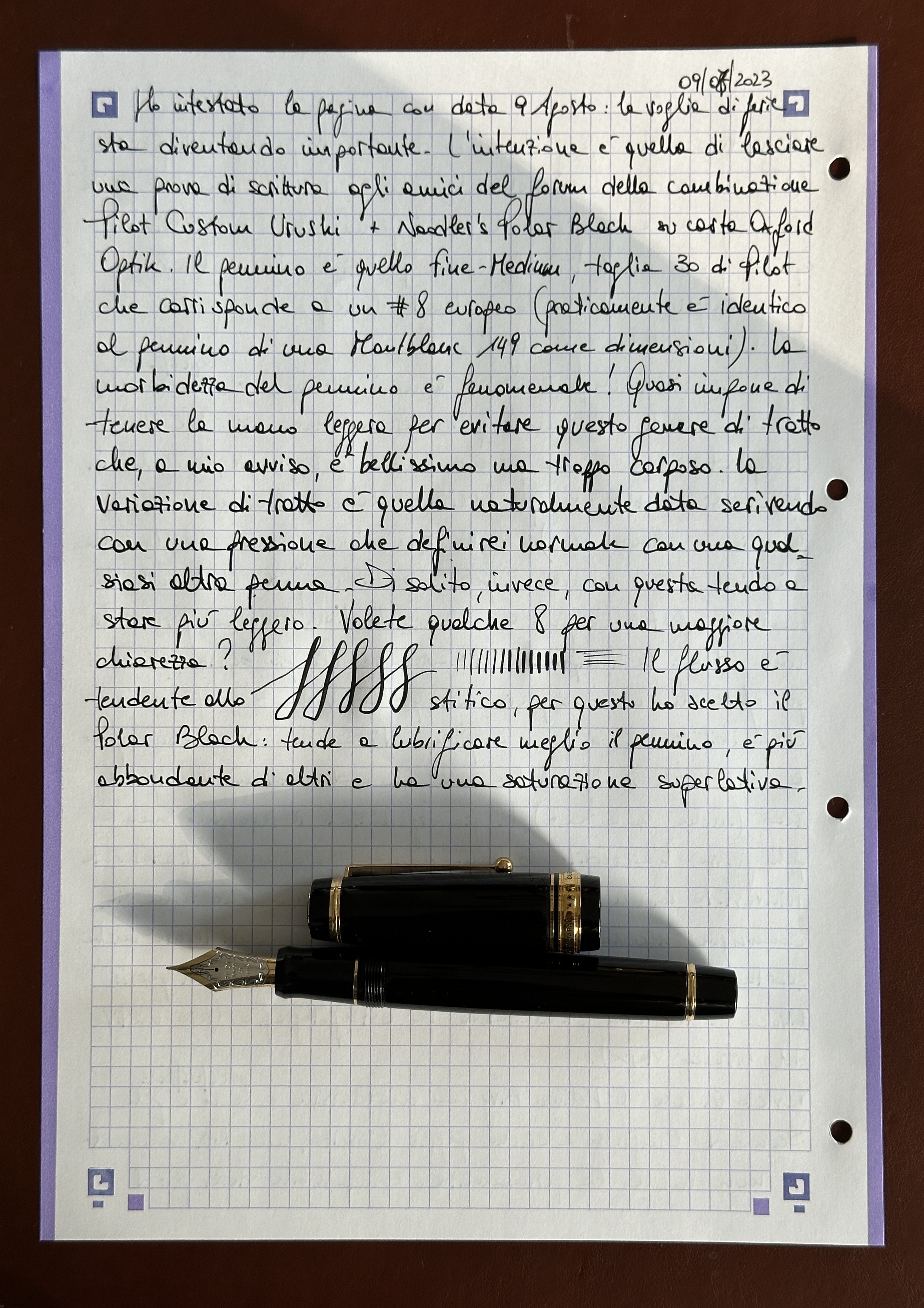 Metto anche un mio contributo, scritto peggio di quanto siete abituati a vedere. Pilot Custom Urushi FM + Noodler’s Polar Black
