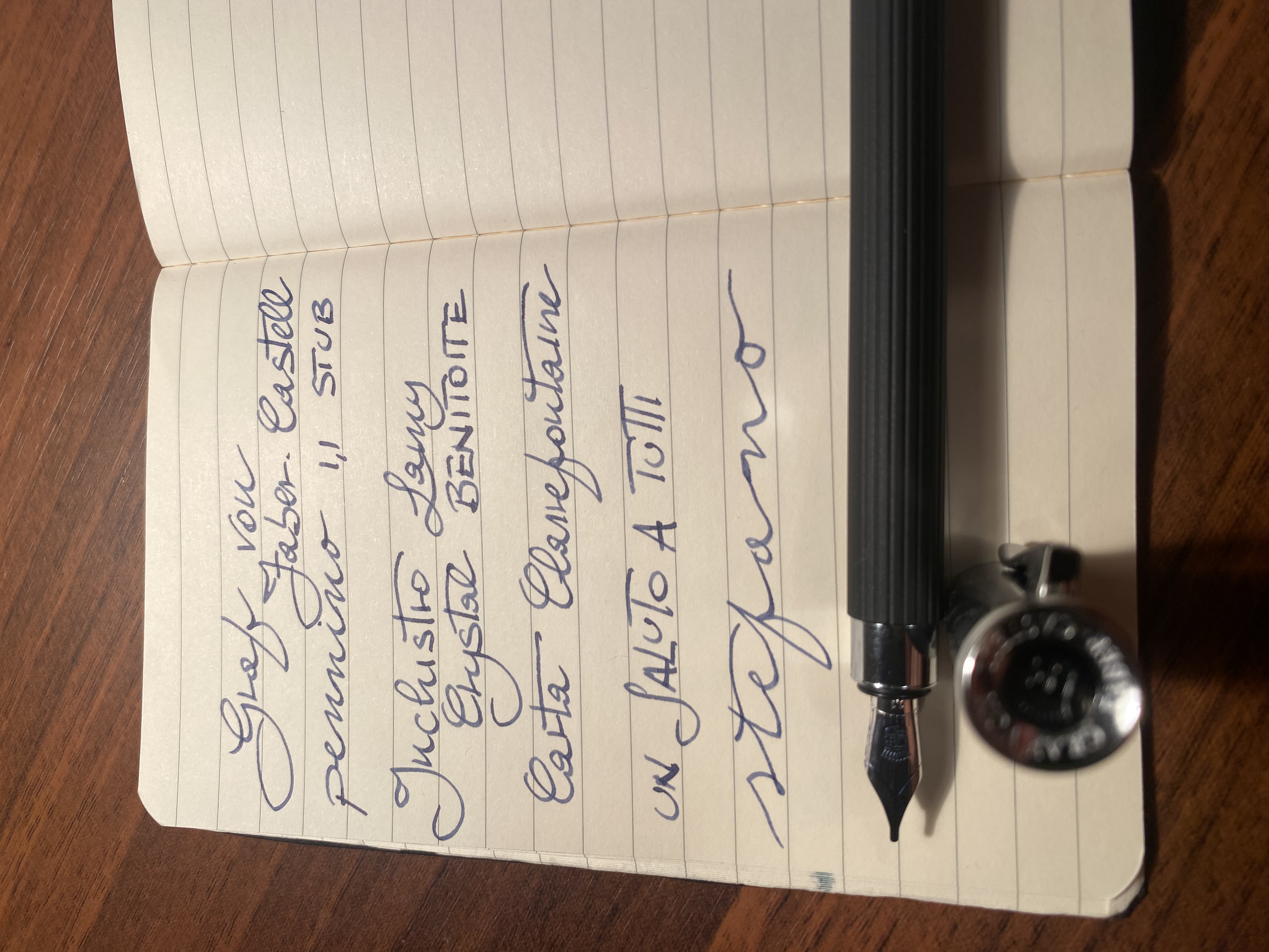d'accordo, però vederla scrivere, anche nella mano di un altro, una indicazione di massima comunque te la dà (soprattutto se usata da mano sapiente), per dire, un ultra fine e un bel cursive italic è vero che sappiamo più o meno cosa aspettarci, ma vedere il tratto sulla carta, anche di un'altra mano, è un'altra cosa. Sul "come" scrive credo che ci fidiamo di più della descrizione (e della buona fede) di chi la fa.![]()