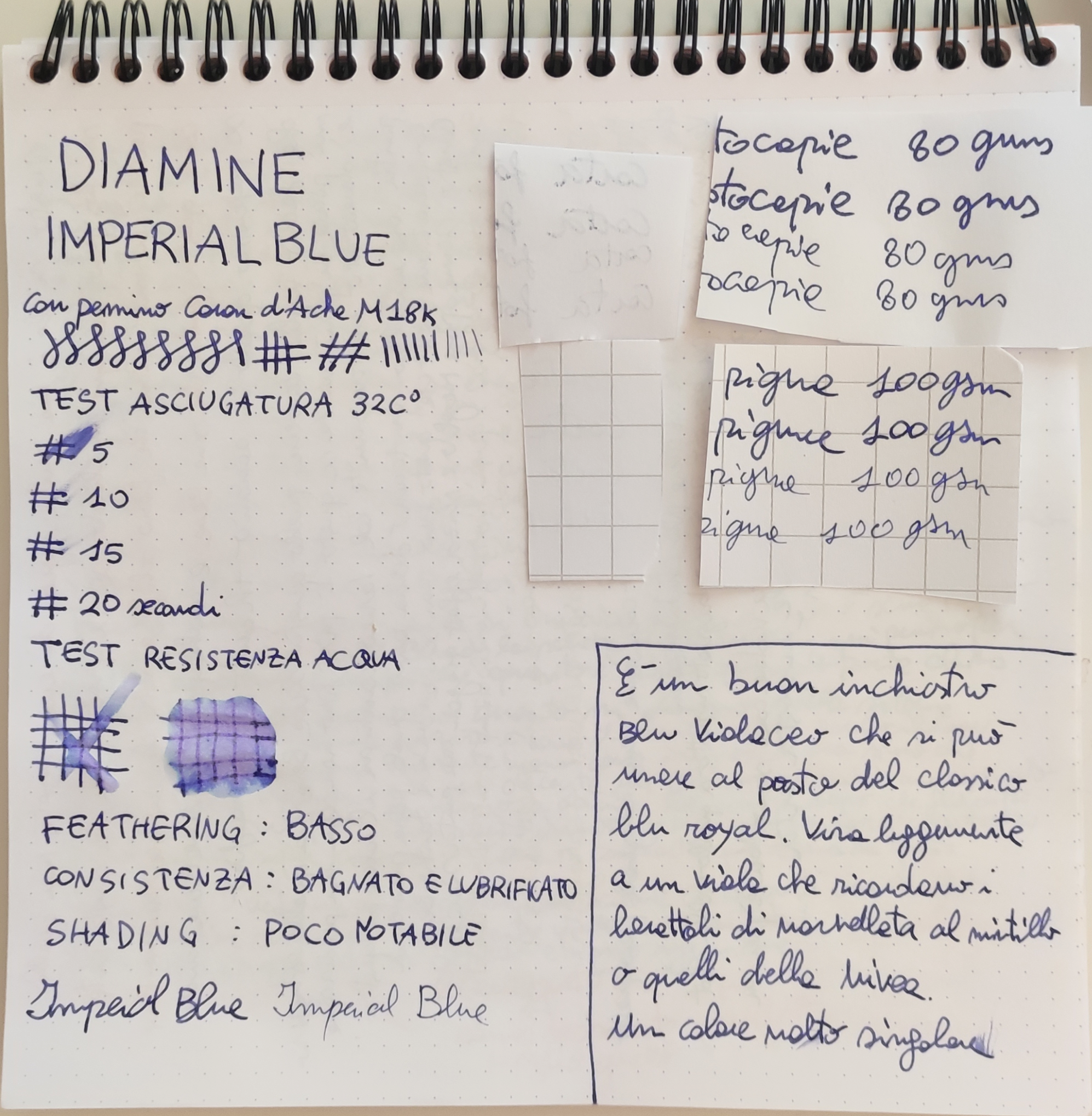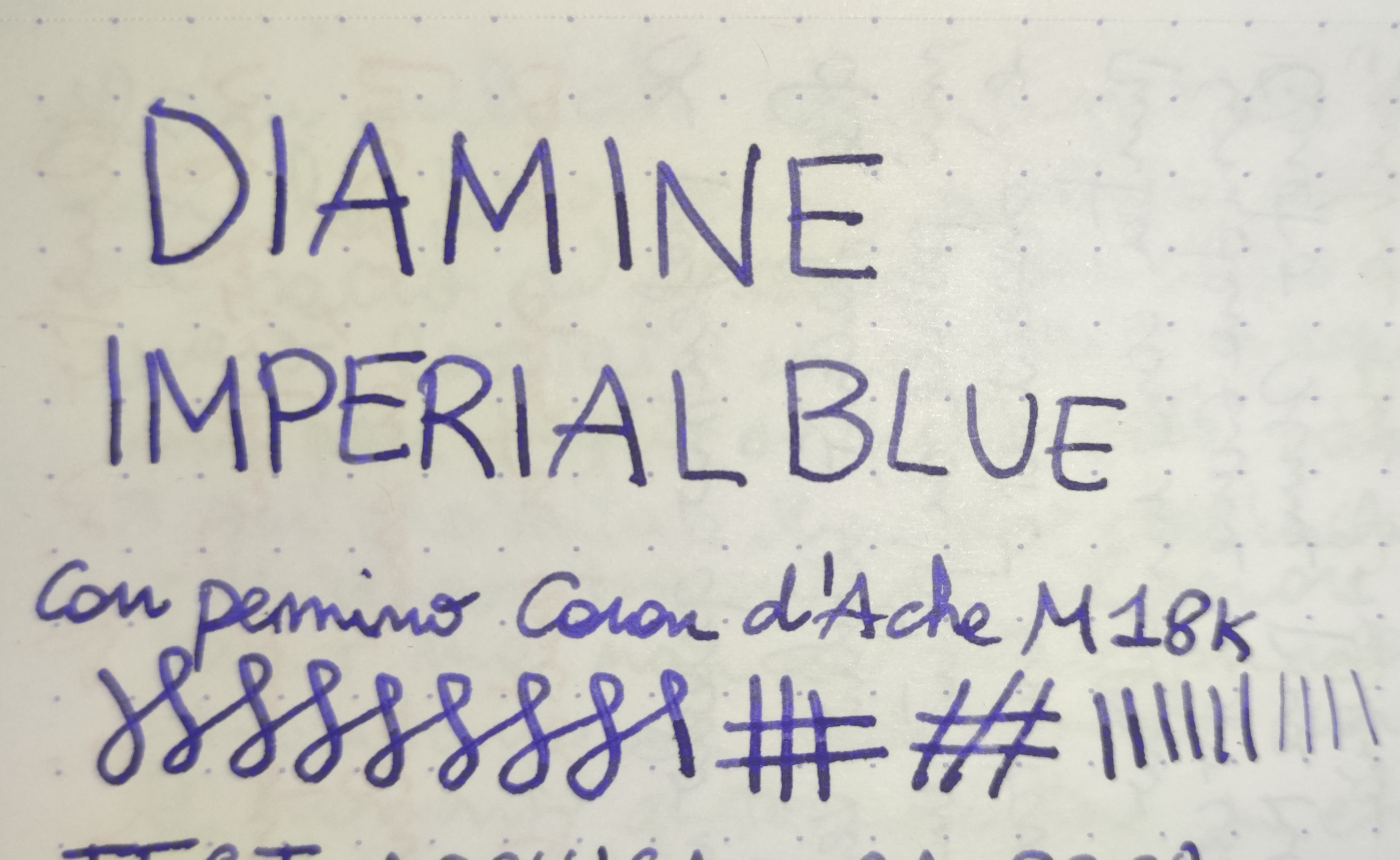 Riguardo l'inchiostro, sembra avere tutte le caratteristiche di un tuttogiorno. Peccato per la dominante viola (problema mio, ma non la tollero più negli inchiostri blu o sedicenti tali).