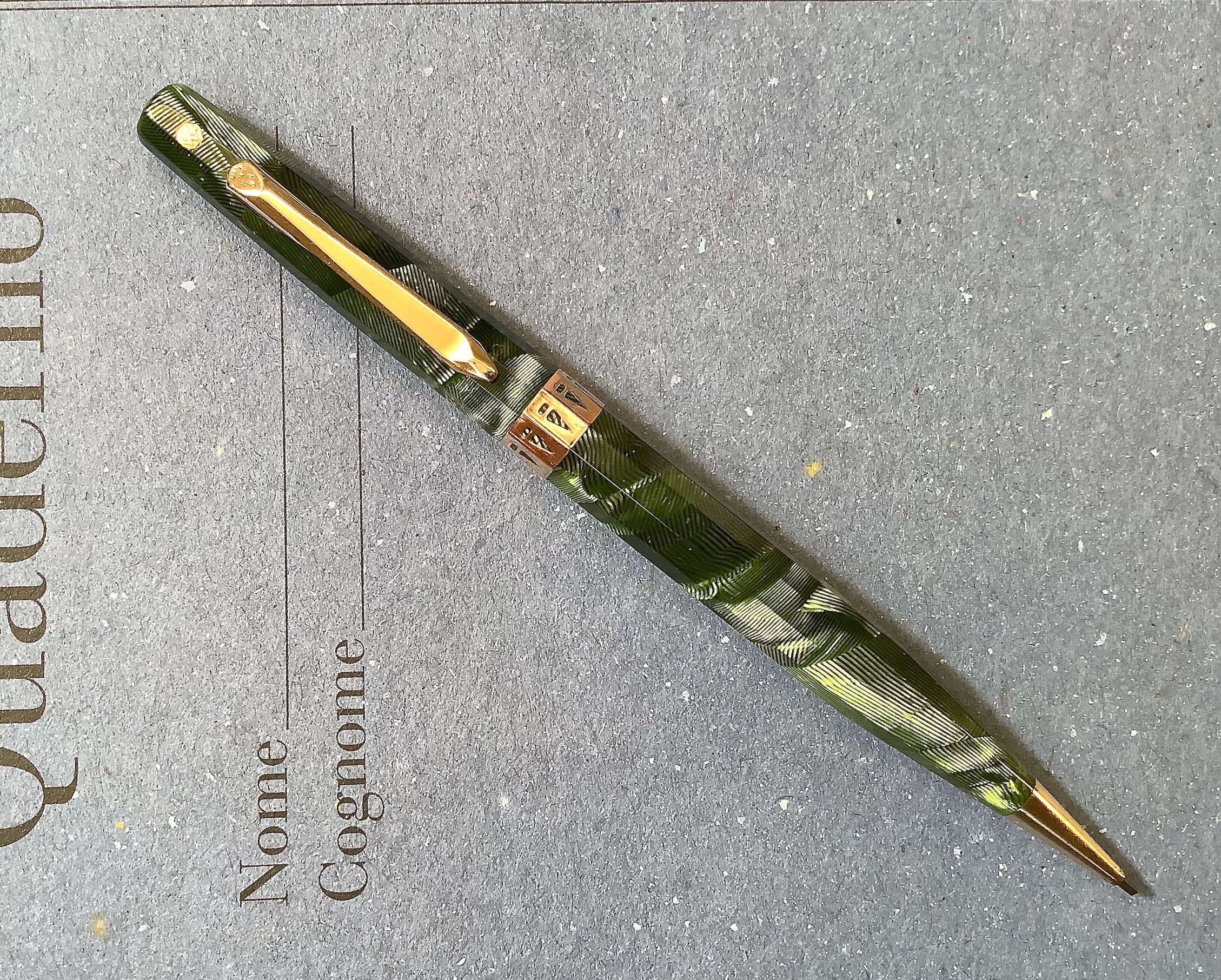 Era la matita (o portamine) "compagna" all’ultima serie delle stilografiche Doric presentate nel 1935 con nuove celluloidi e nuove colorazioni, questa in particolare è nella colorazione Emerald (o Green Shell).