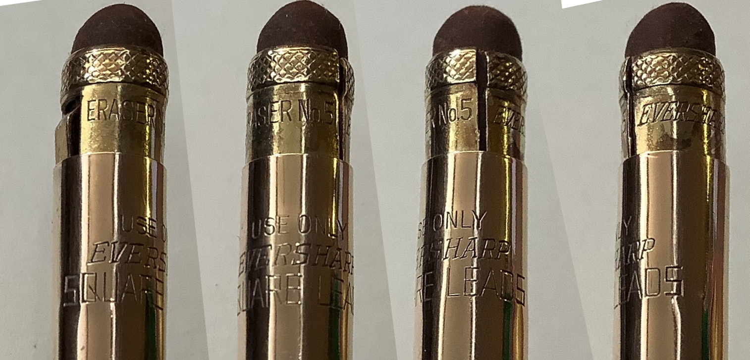 L'indicazione di "utilizzare solo mine quadrate di Eversharp" era stata introdotta l'anno precedente (nel 1934) da Eversharp che mise in vendita matite e mine a punta quadrata , pensata e brevettata dalla fervida mente di Robert Back (ancora lui !) https://www.fountainpen.it/File:Patent-US-1916199.pdf , poiché le mine quadrate potevano essere meglio adoperate su matite dotate di qualsiasi puntale (anche non quadrato ma tondo come di norma) senza problemi di eventuali inceppamenti della mina stessa (in realtà non fu proprio così, ma tant'è ...)