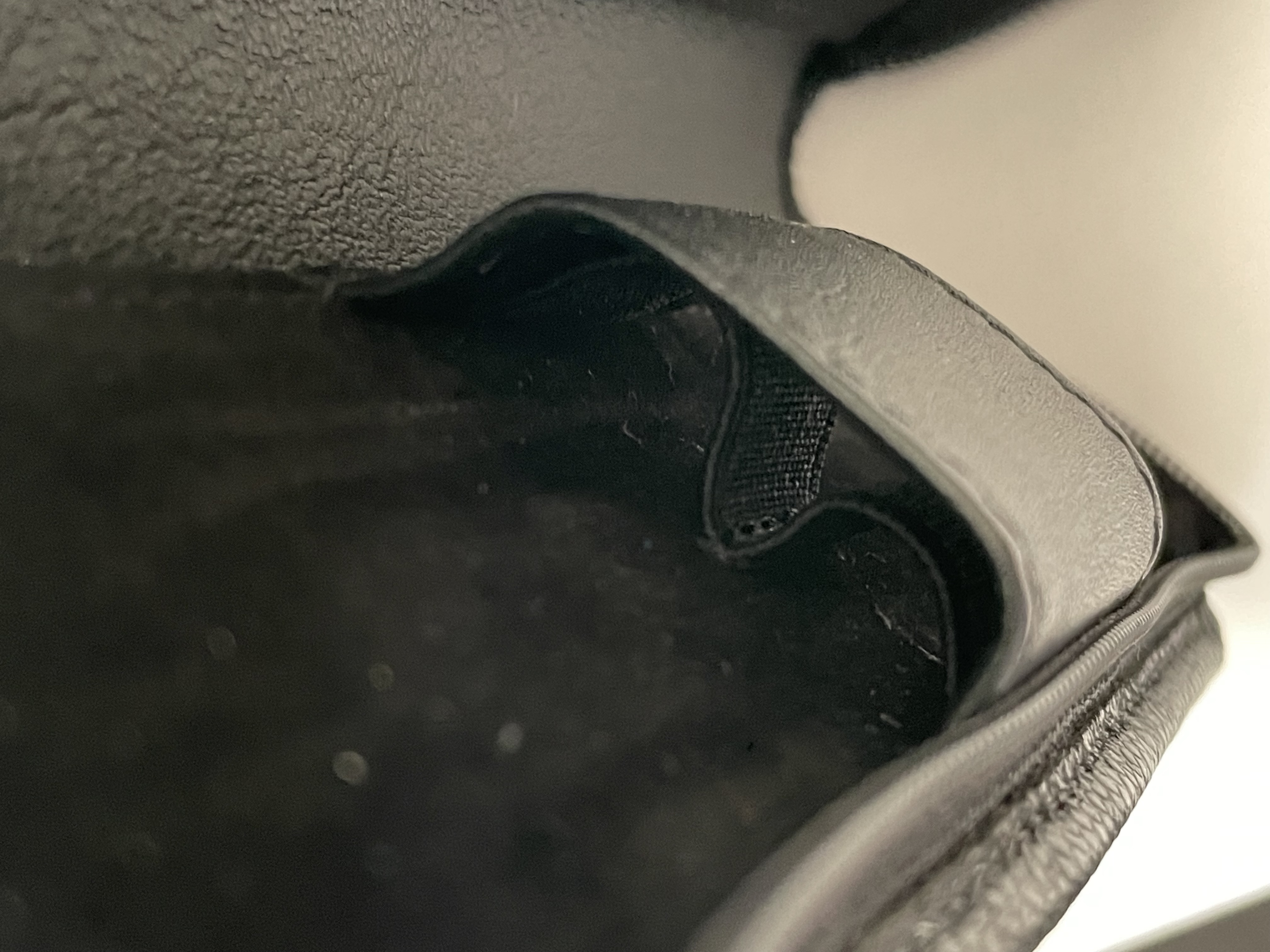 I 2 con la zip sono praticamente identici, in pelle nappa liscia quello sopra (che si vede pure aperto), in pelle saffiano quello sotto. Quest’ultimo è il mio preferito, sarà l’effetto della pelle, ma pare più robusto.