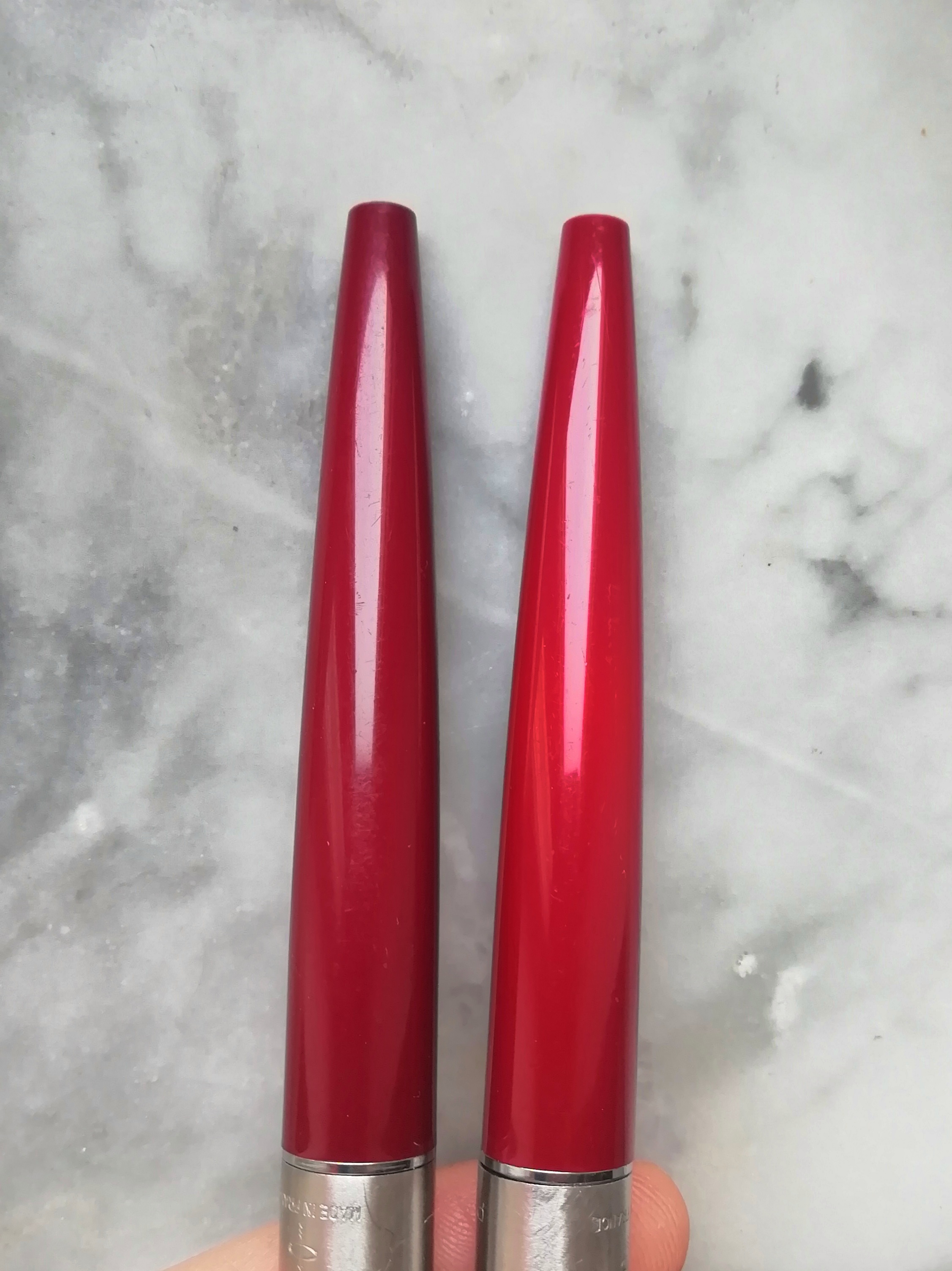 Ho affiancato due cappucci prima versione (conical) entrambi made in France. Quello di sinistra è quello della nuova penna in cui ho riscontrato differenze.