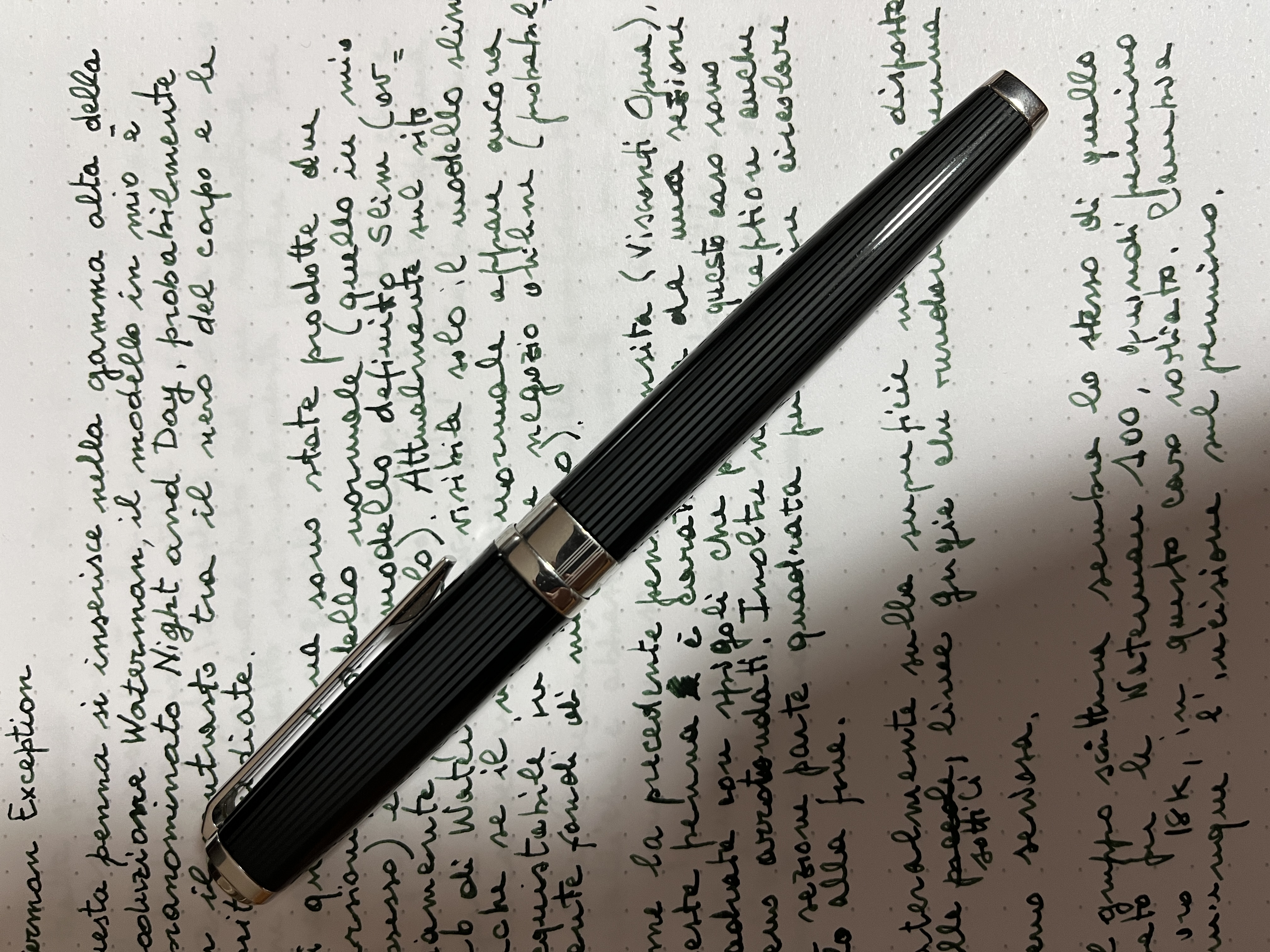 Ho acquistato recentemente una Exception Night and day, caratterizzata dai due fianchi laterali comletamente dorati ed a righine e condivido con te l'impressione di penna di sostanza con uno splendido pennino con una morbidezza di scrittura veramente notevole