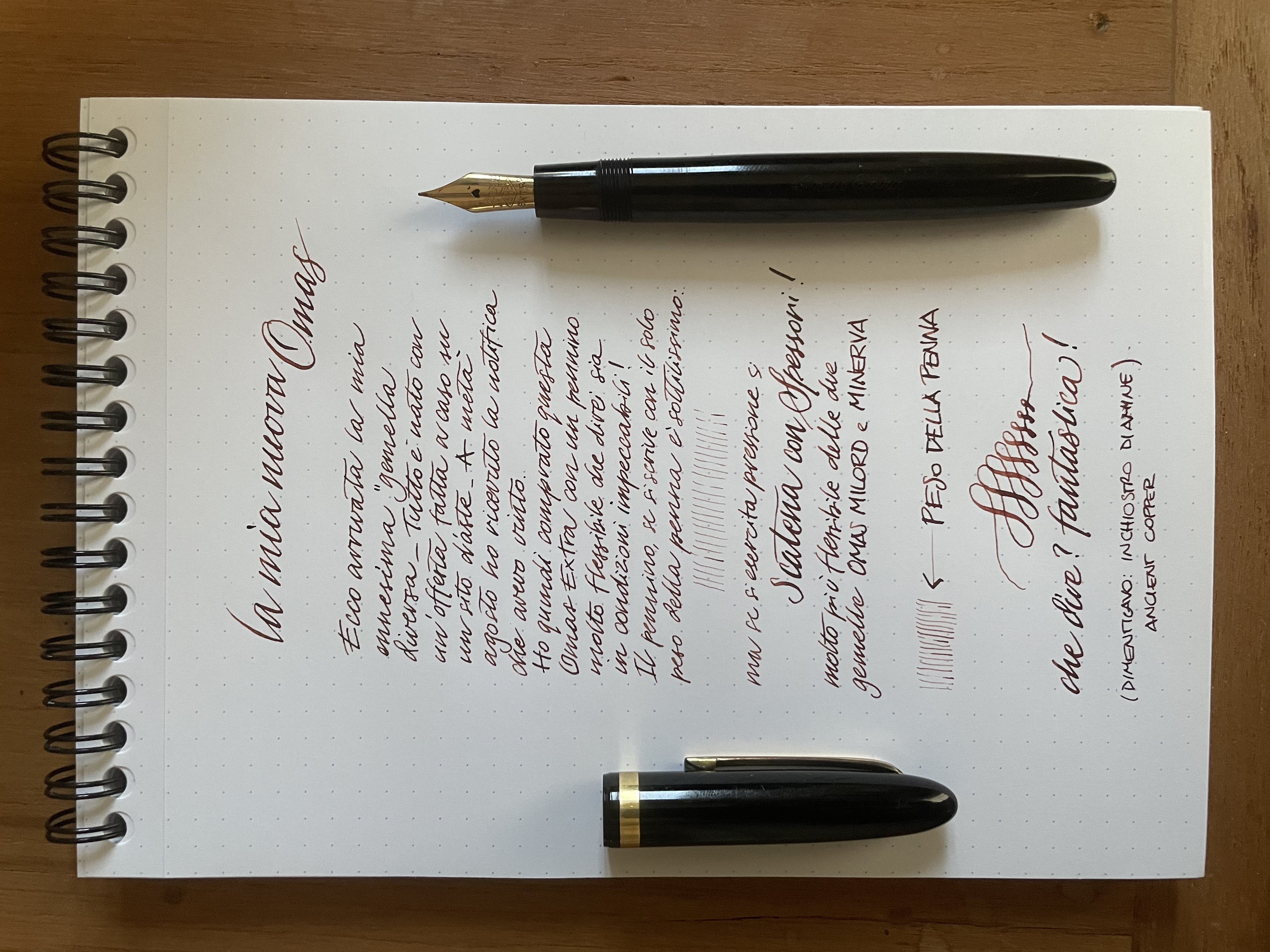 Anzitutto complimenti sia per la bella penna che per la bella grafia che rende piena fede delle prestazioni del pennino!