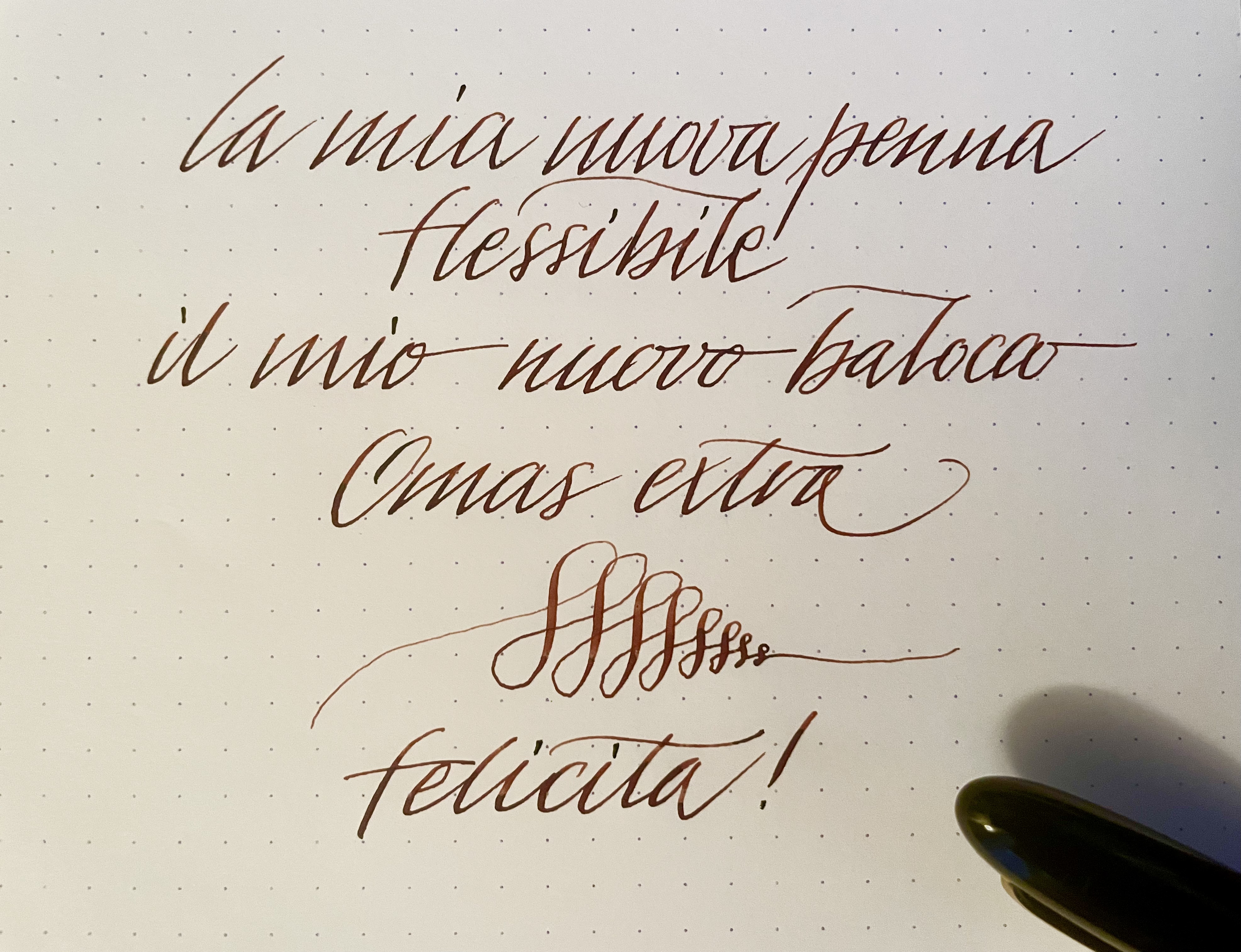 il pennino mi sembra letteralmente uno spettacolo: Un extra-fine estremamente scorrevole, flessibilissimo e con un tratto davvero impercettibile se si scrive con il solo peso della penna.