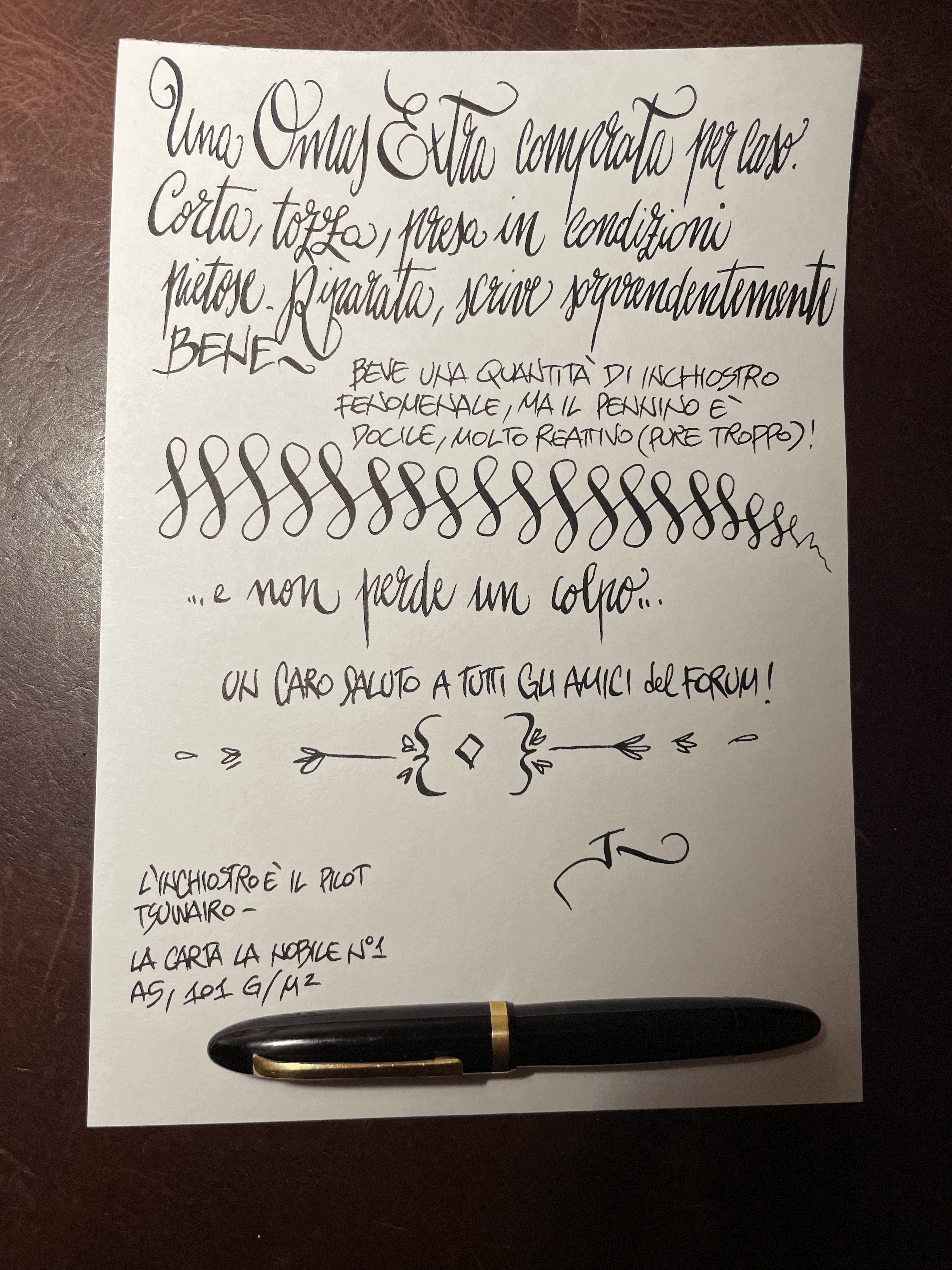 Come va il Pilot Tsuwairo? Come si comporta con le penne? Le intasa/macchia? È nero nero?Jaconib ha scritto: ↑martedì 12 settembre 2023, 0:08 Un po' più di due righe, in realtà le penne che ho inchiostrato e come funzionano (alcune male).