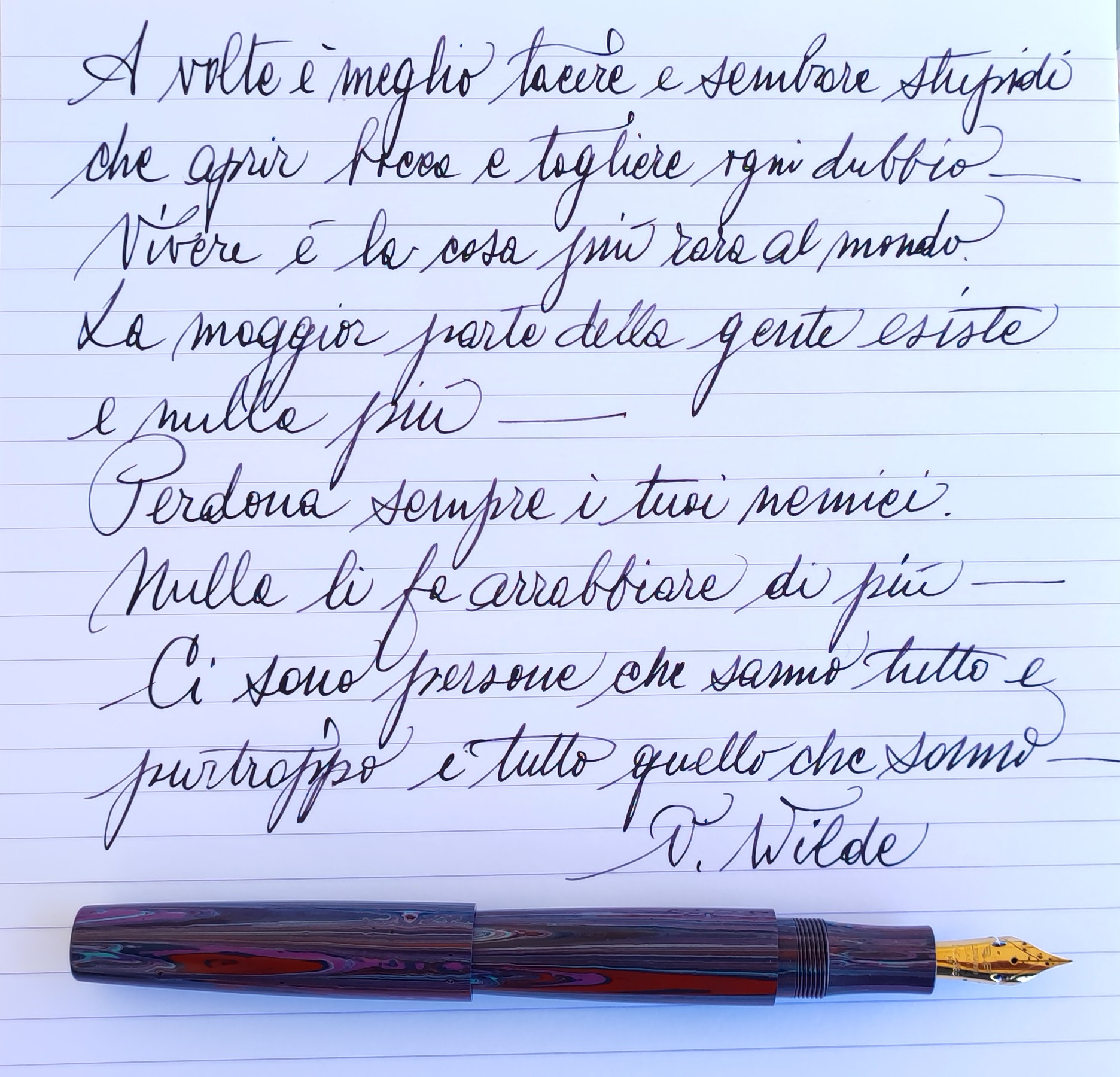 Citazioni di O.Wilde con Leonardo officina italiana Essenza in Ebanite pennino oro elastico ef