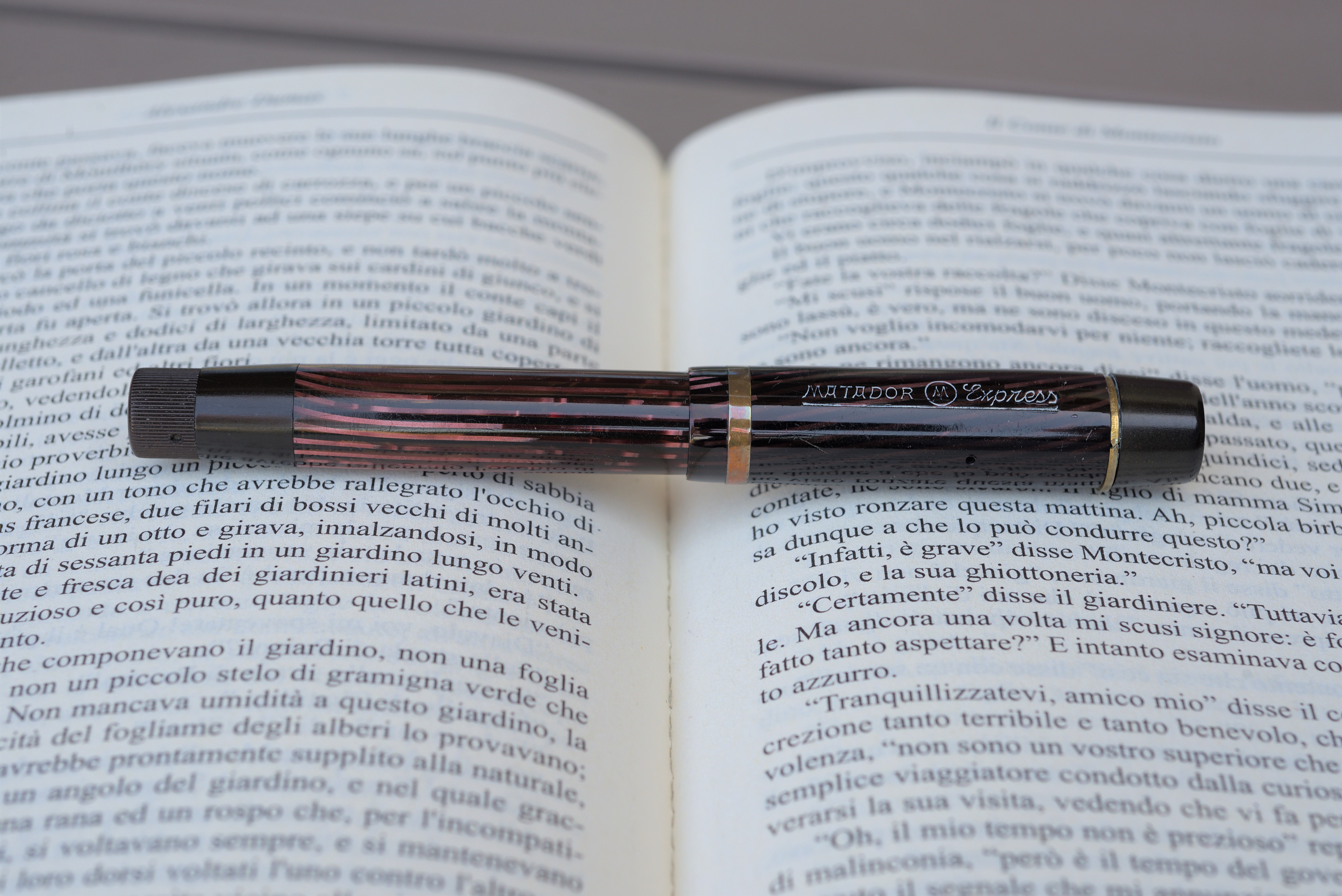 Oggi vorrei presentarvi una delle mie prime penne con pennino flessibile, si tratta di una Matador Express con un pennino in oro dotato di una più che buona flessibilità, molto reattivo, quasi "nervoso" nel senso che ha un ritorno molto rapido.