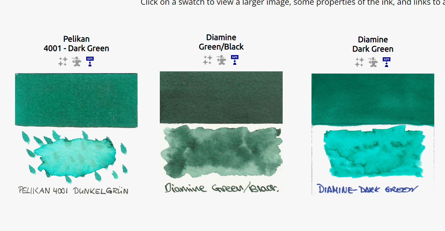 È stato il primo inchiostro non nero o blu che ho comprato. Ero all'inizio dell'avventura stilografica e volevo un colore da poter comunque usare an he in contesti formali. La prima penna in cui lo caricai fu una Montblanc 145 con pennino medio. In quella penna era perfetto cromaticamente perché il flusso più che abbondante lo rendeva quasi nero con riflessi verdi..peccato che continuava a sbavare anche dopo una settimana...lo accantonai.