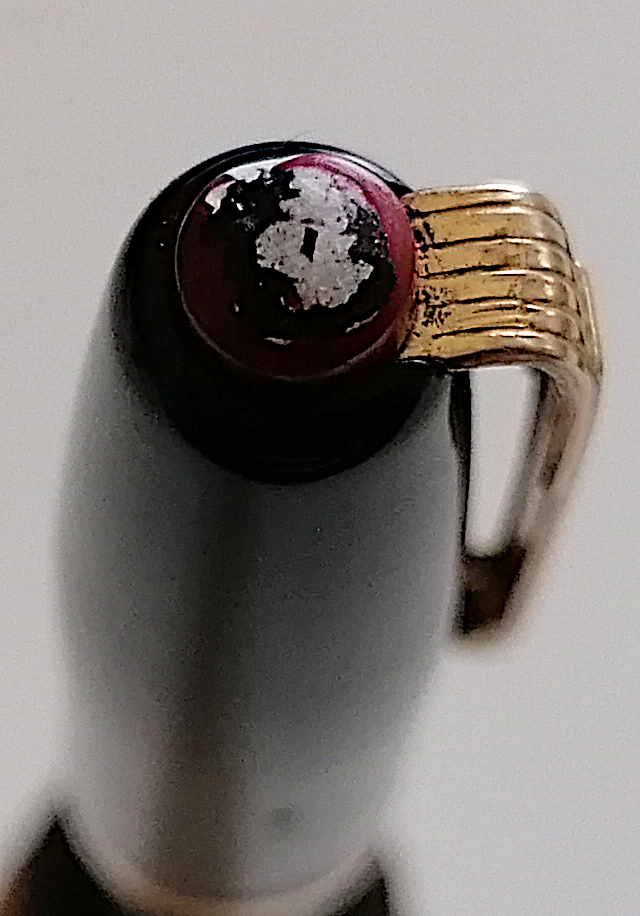 Si tratta di un dischetto di color burgundy (almeno questo è quanto risulta ora), fatto di un materiale plastico purtroppo fragile. infatti nel solo tentativo di lucidarlo