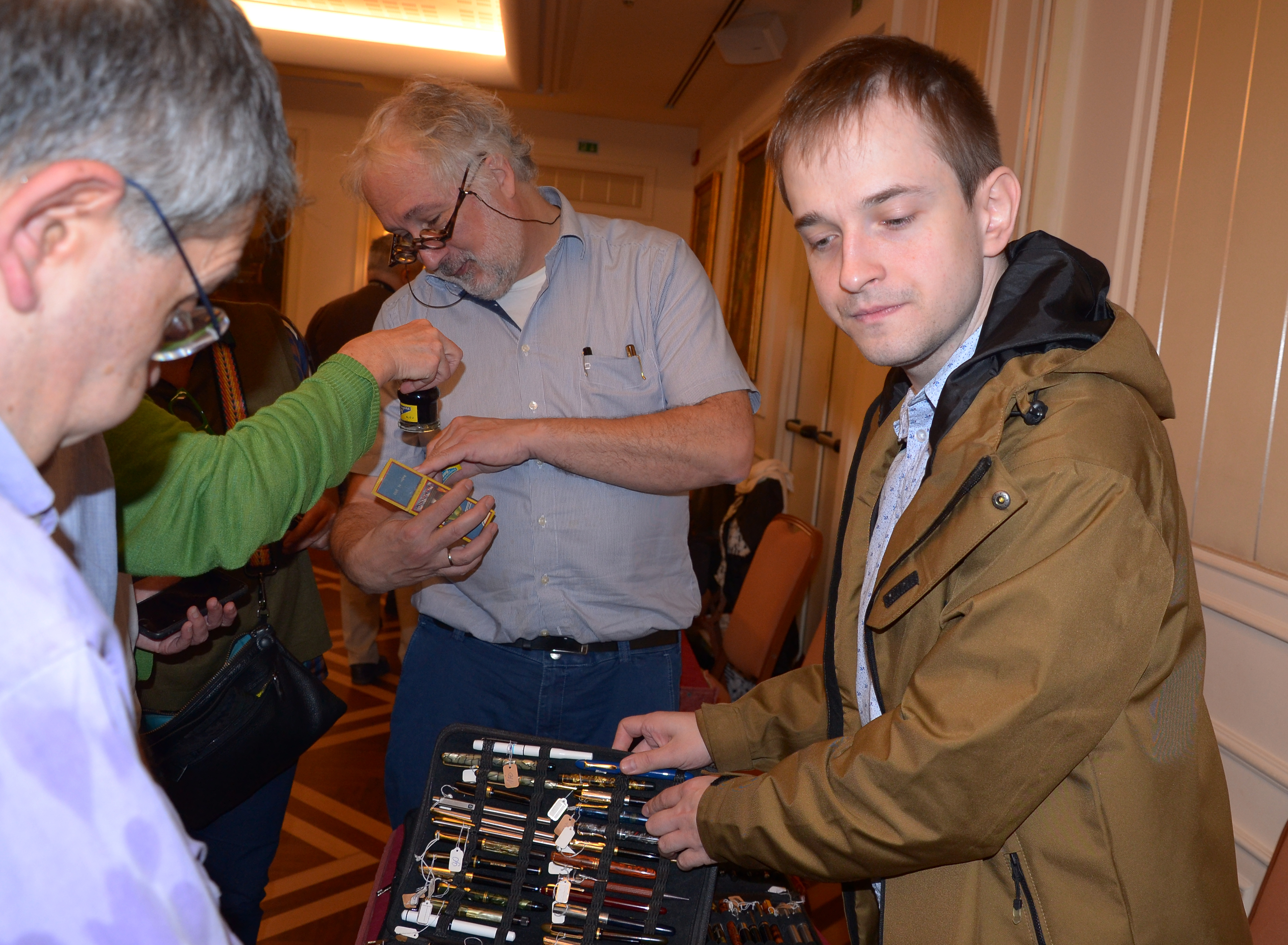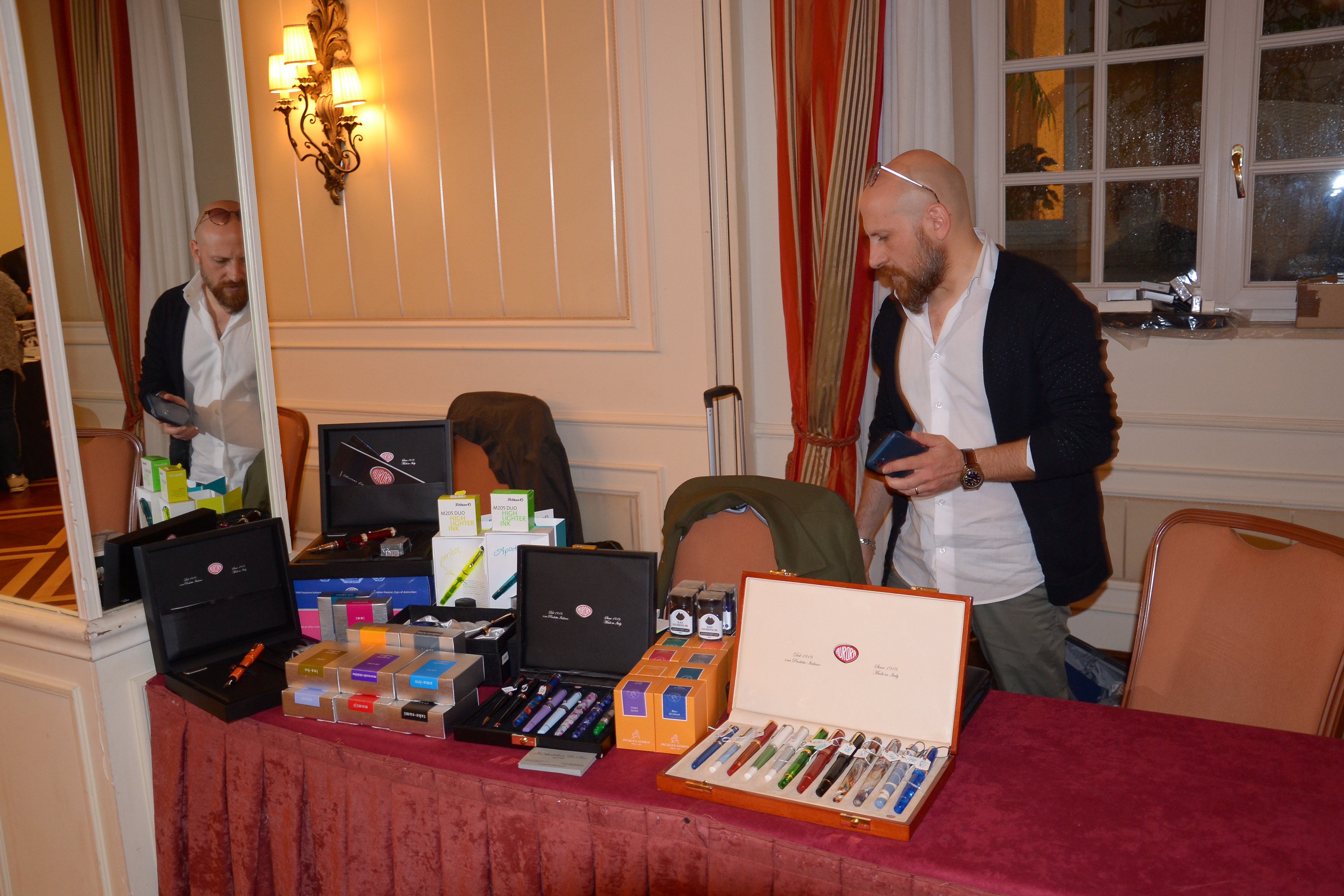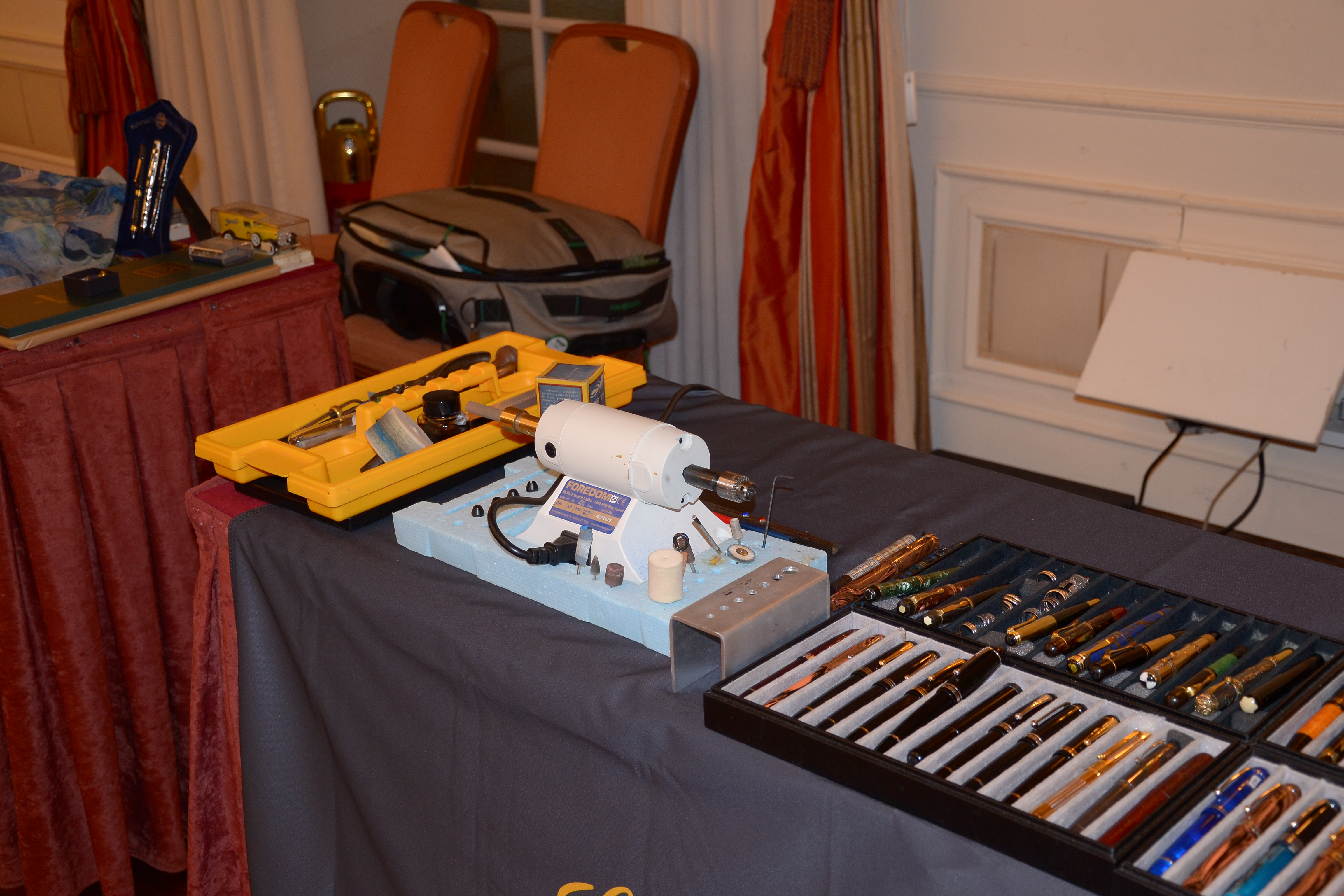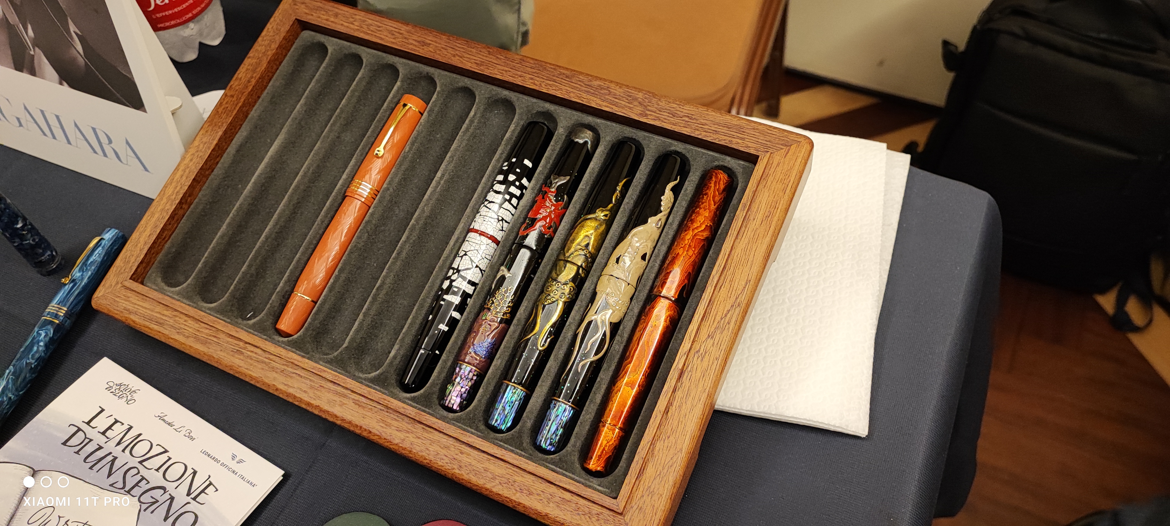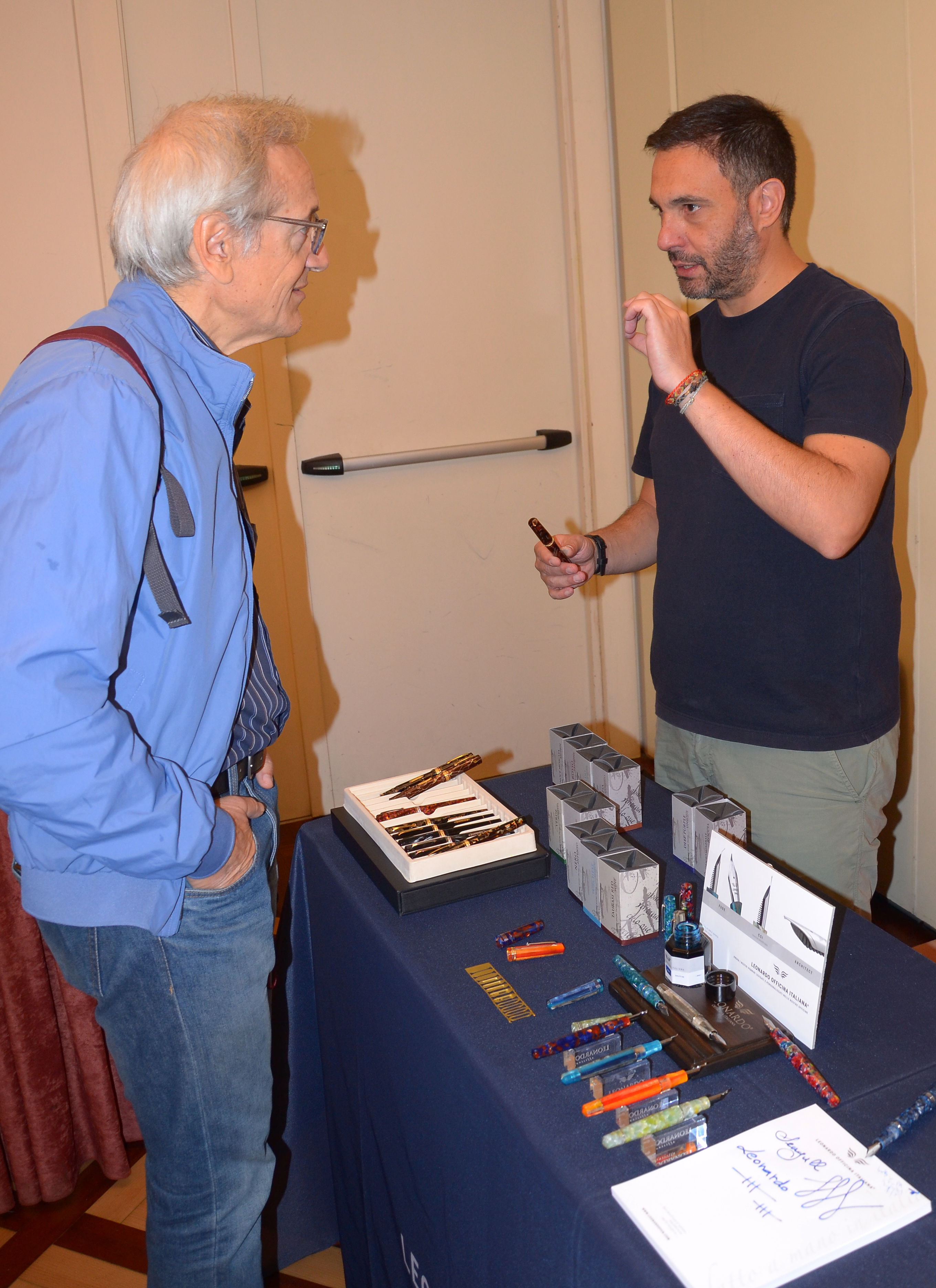 Molte e bellissime penne, non mancavano amici come Tom con tutta l'apparecchiatura per la regrinadatura pennini e sistemarli al meglio.