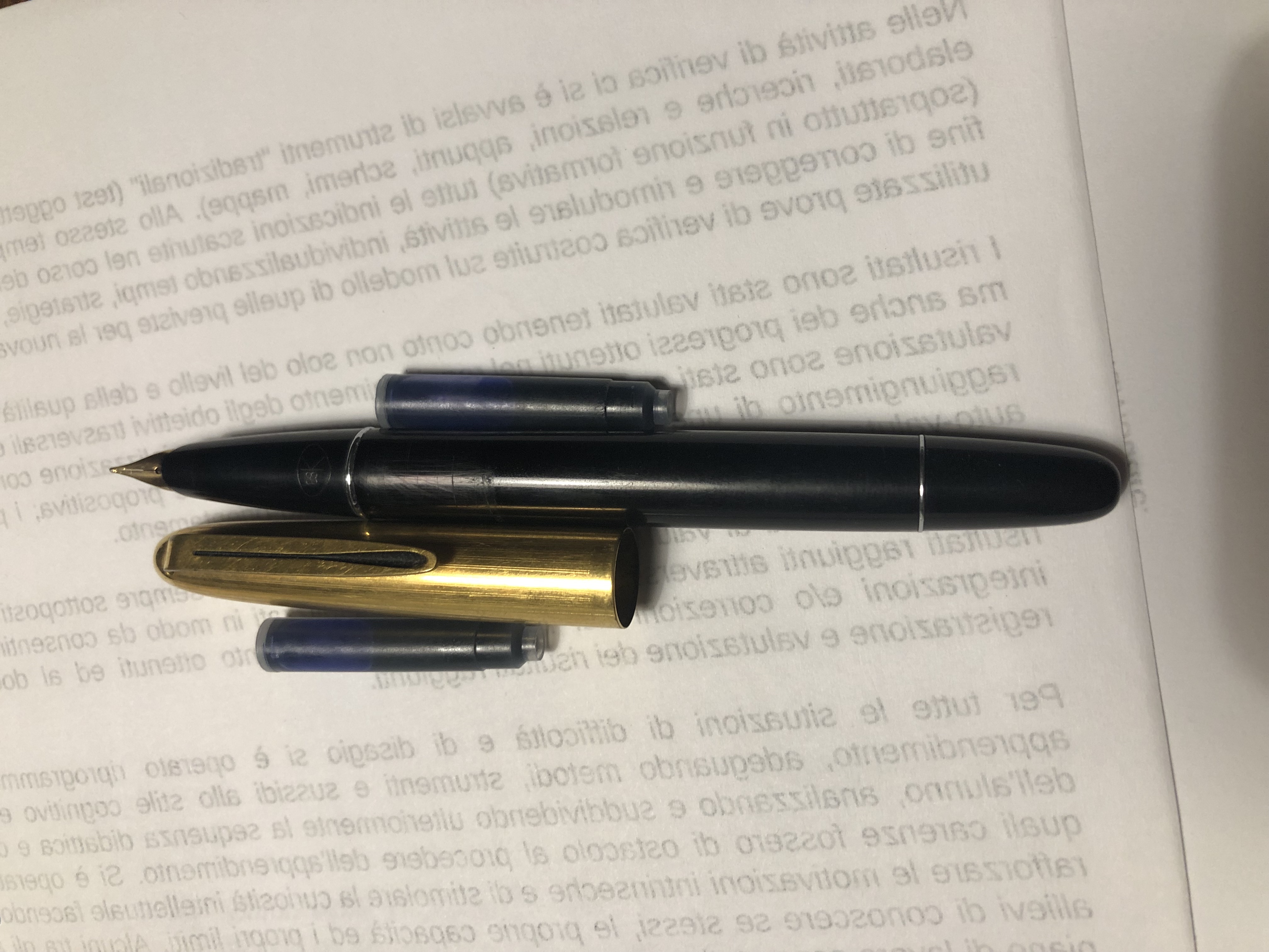 Non entro nel merito della datazione, istintivamente collocherei anch'io questo tipo di penne negli anni 60, ma non entro neanche nell'argomento, visto quanto già detto.