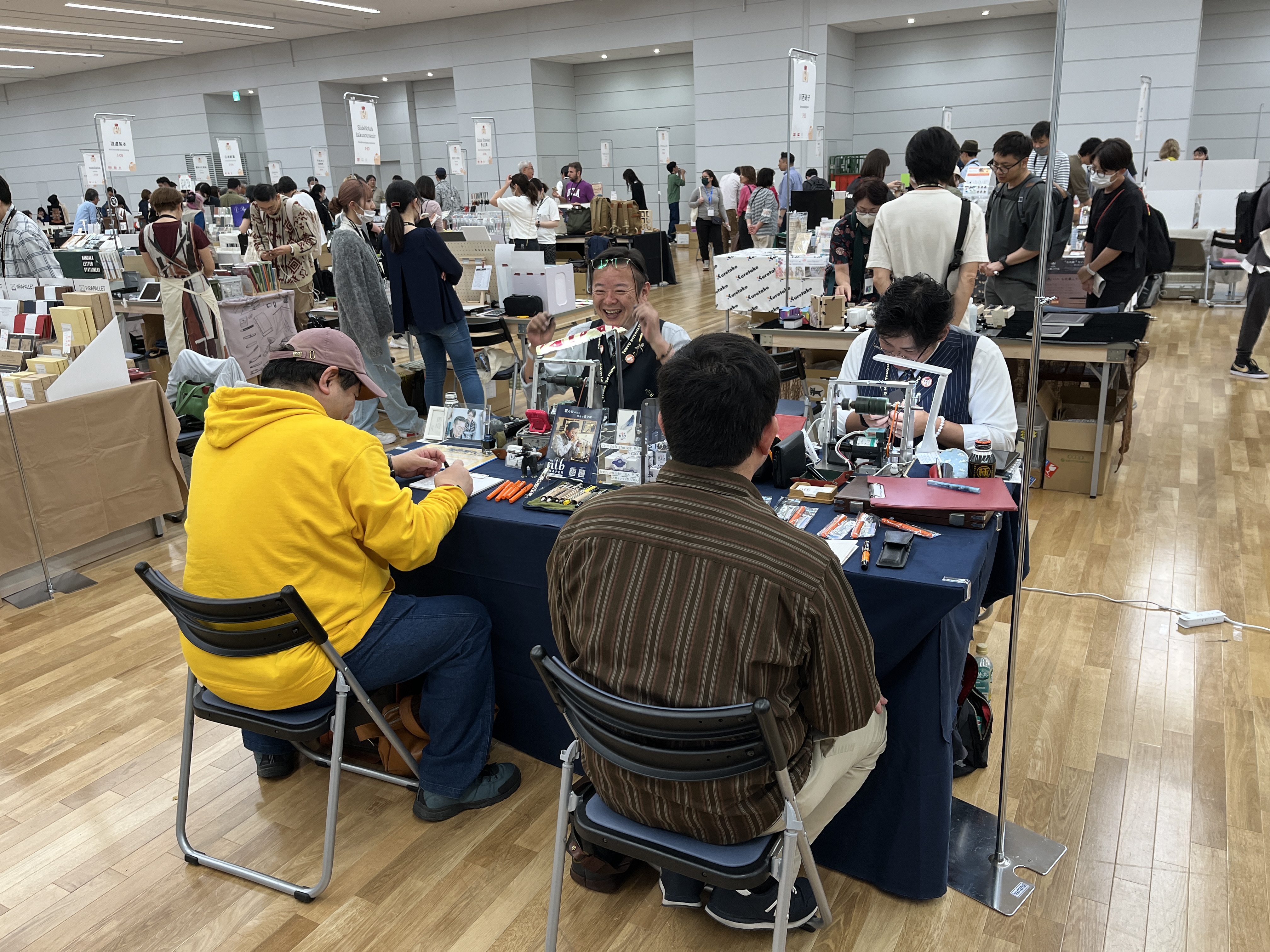 Cominciamo con descrivere l’atmosfera che definirei un caos organizzato, due piani per una sessantina di espositori, un mare di persone e molti ragazzini (anche se è difficile dare l’età ad un giapponese). Moltissime penne moderne, molti artigiani indiani e giapponesi, molti espositori di inchiostri, carta e accessori vari, in questo mare magnum, solo 3/4 espositori avevano penne veramente vintage (che invece sono predominanti in Italia), molti avevano penne usate.