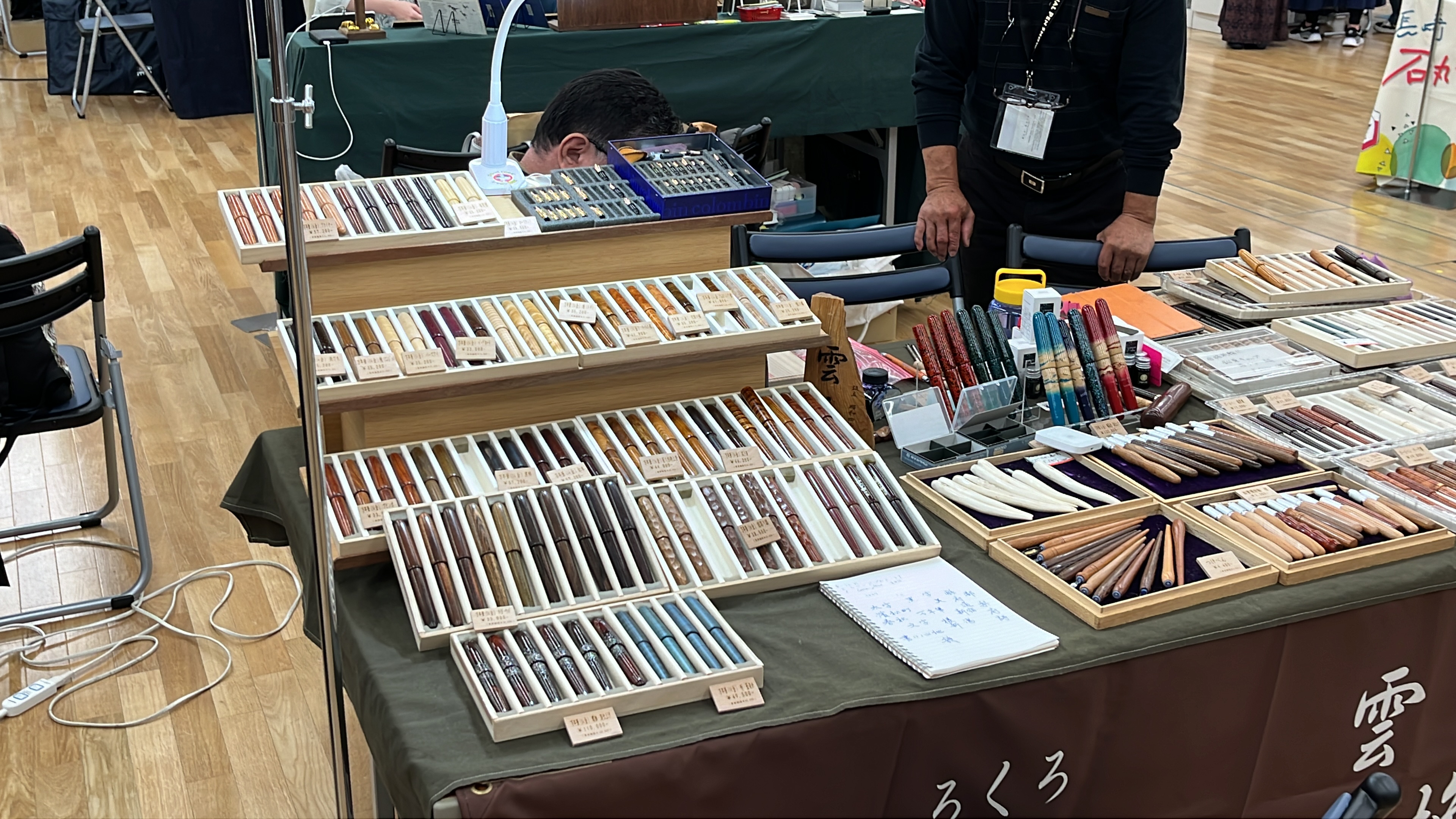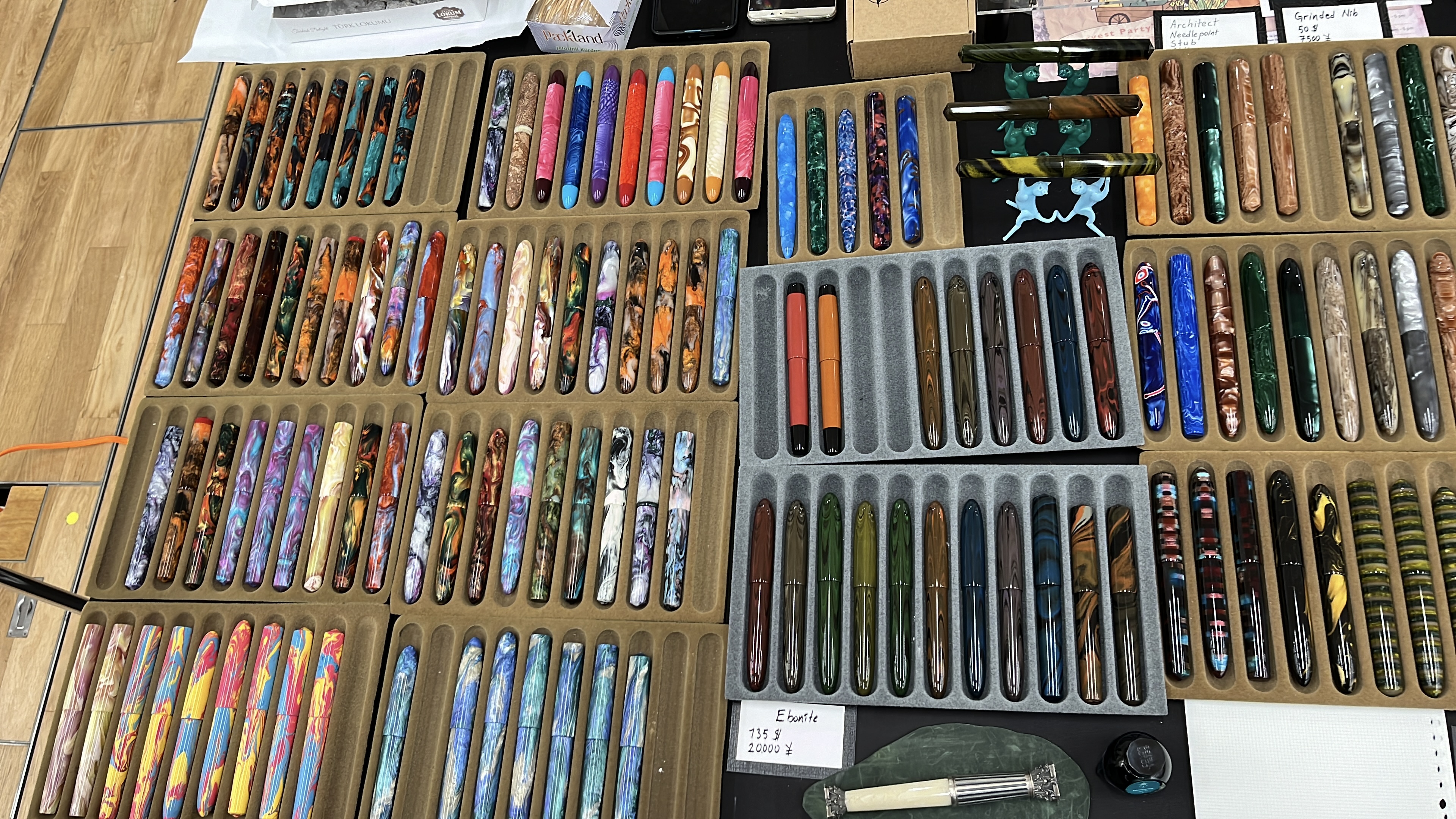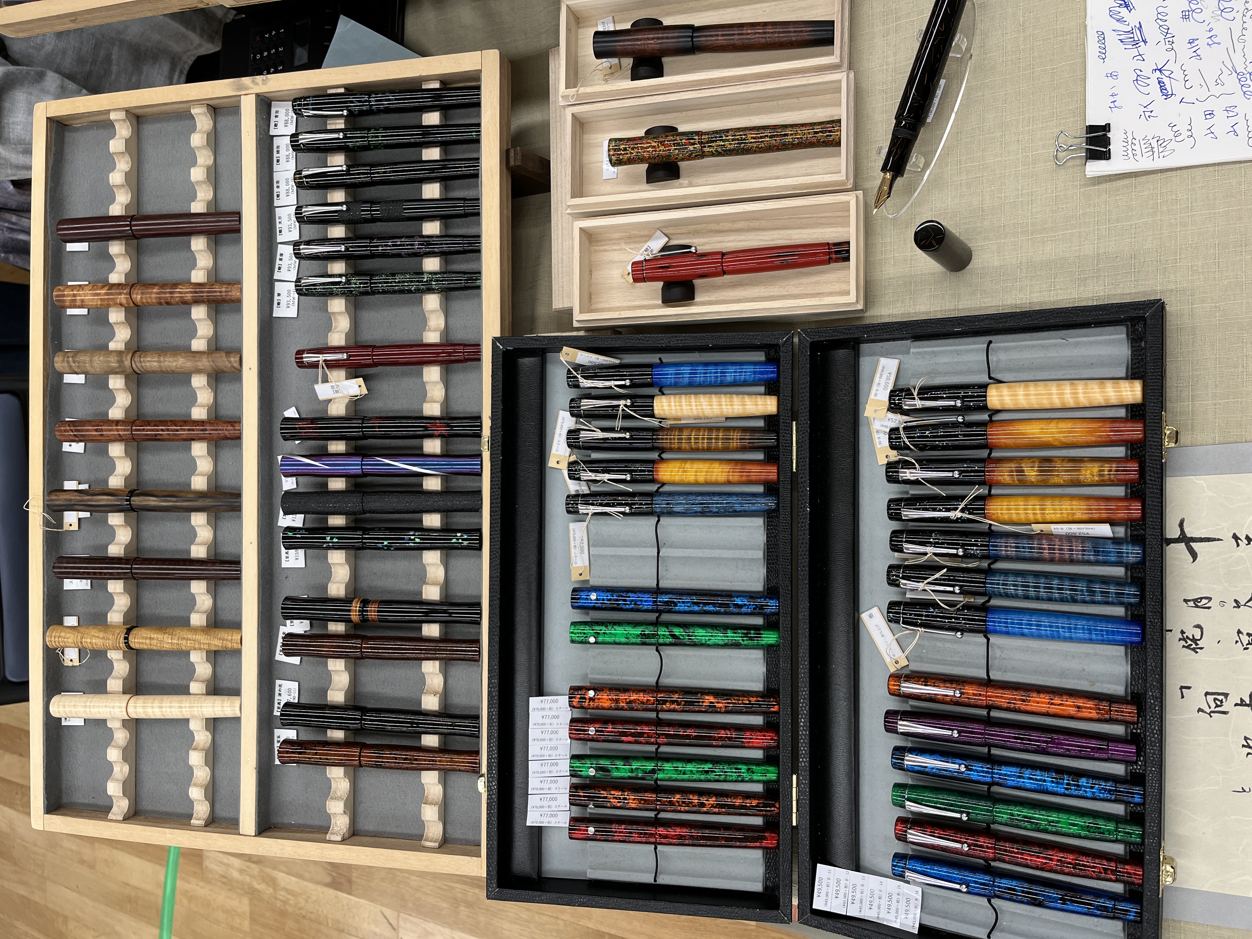 Il fatto che non ci fossero molte penne vintage non mi scandalizza, a volte i nostri pen show sembrano dei musei. Bello per carità, interessante vedere e toccare le vecchie glorie, però anche poter accedere alle nuove produzioni in un pen show non è male, anzi forse sarebbe auspicabile che accadesse di più anche da noi. Poi il Giappone è la patria delle produzioni artigianali con tecniche sofisticate di decorazione e laccatura, quale posto migliore per vederle e provarle. Fosse stato per me avrei dedicato tutto il tempo unicamente alle ebaniti (il resto posso vederlo altrove!), temo che ne avrei portate a casa una manciata!