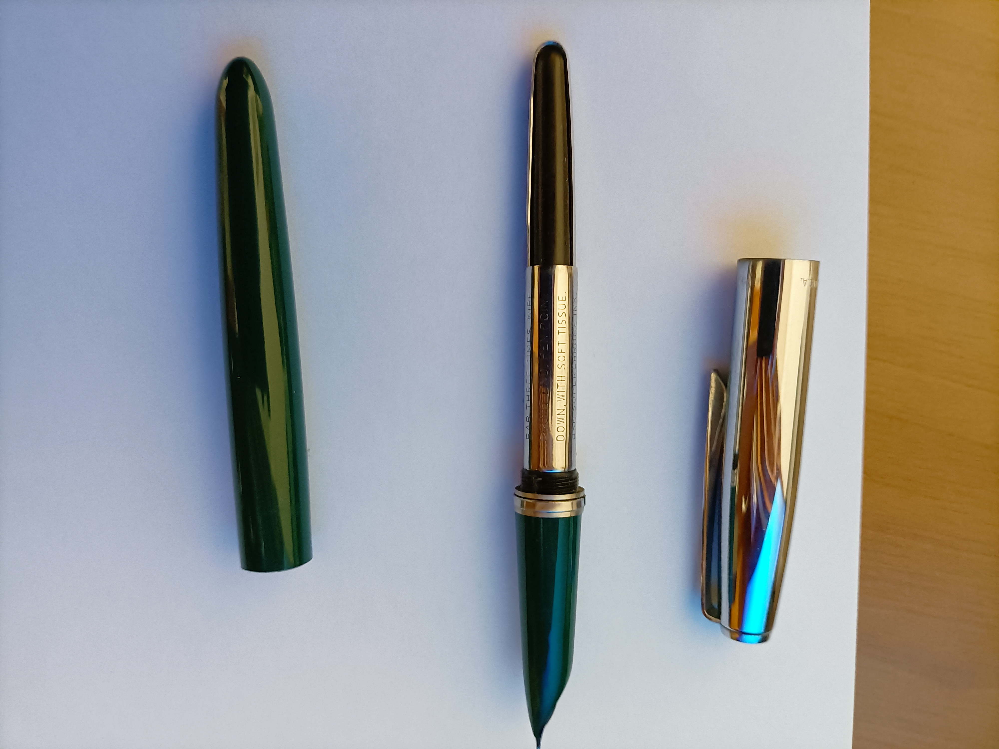 Per quanto riguarda il riconoscimento della tua seconda penna: ci sono incisioni sul fusto? Sul pennino c'è scritto qualcosa ma non riesco a leggere, potresti fare una foto più ravvicinata?