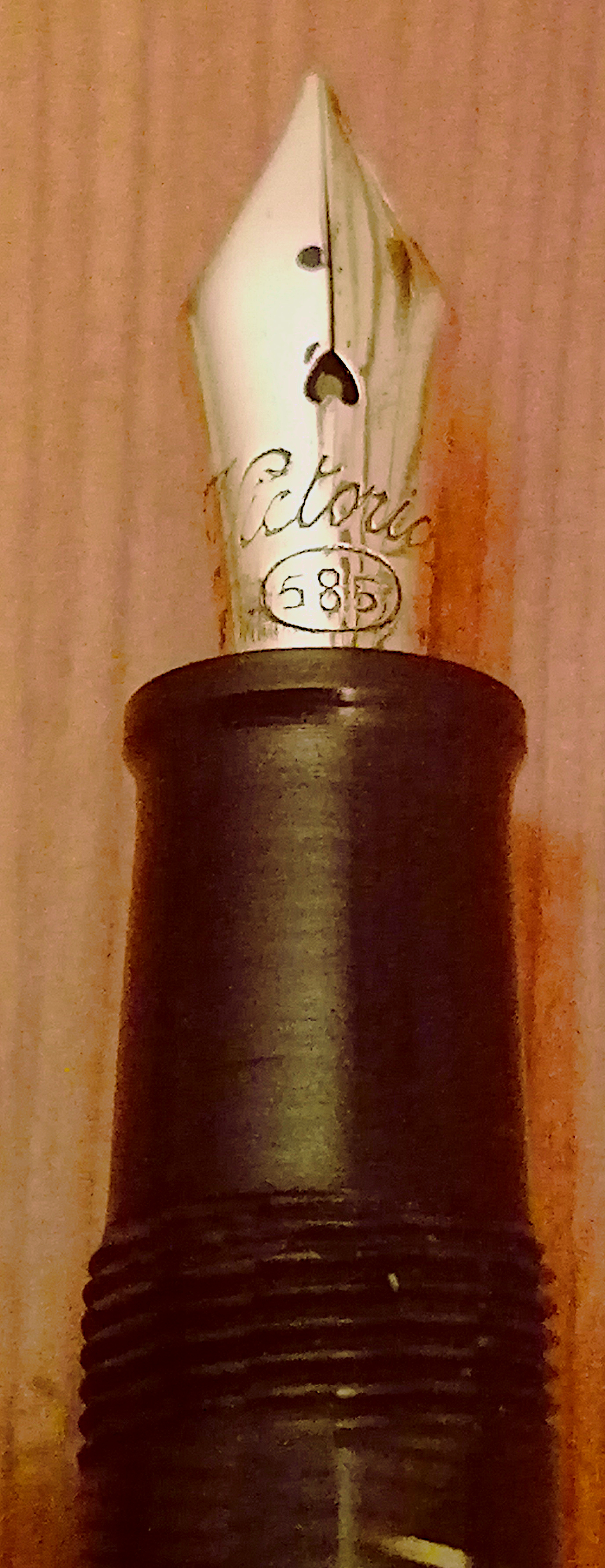 Qualcuno è in grado di offrirmi ulteriori notizie? In particolare: la penna rimane un'anonima (osservata alla lente non reca alcuna scritta) o, visto il pennino, si può ipotizzare che sui tratti di una penna Victoria?
