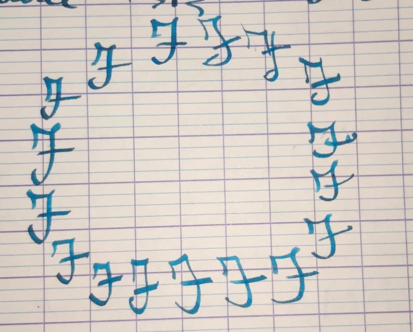 Si vede come la F delle ore 8 e mezza ( circa 60°) sia la F migliore (non per variazione ) perché è dove scivola meglio il mio pennino.